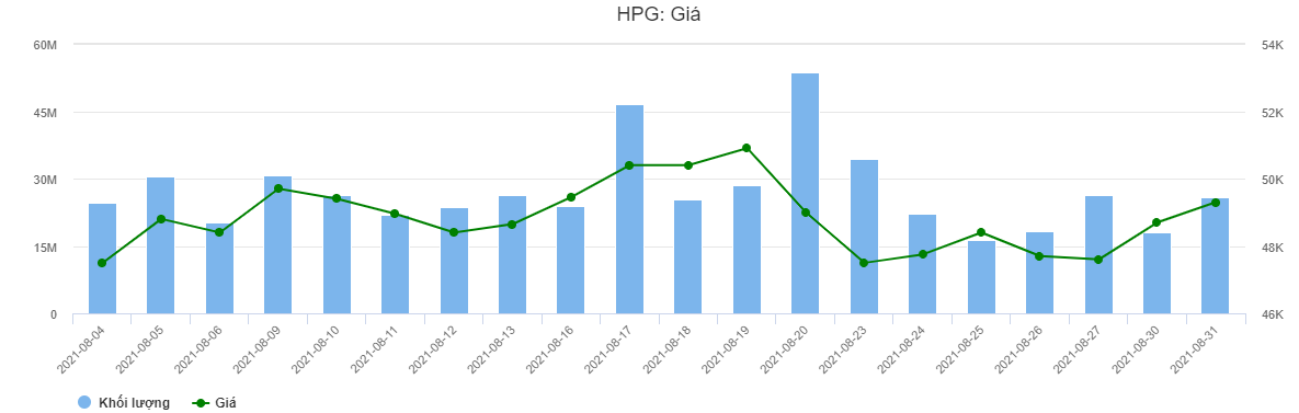 Dữ liệu giao dịch cổ phiếu HPG trong tháng 8/2021. Nguồn: Vietstock.