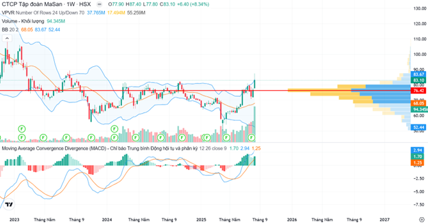 Nhiều công ty chứng khoán duy trì quan điểm tích cực về cổ phiếu MSN. KBSV định giá theo phương pháp SoTP ở mức 100.000 đồng/cổ phiếu, dựa trên triển vọng tăng trưởng hai chữ số tại Masan Consumer, WinCommerce và Masan MEATLife. VCBS khuyến nghị MUA với giá mục tiêu 93.208 đồng/cổ phiếu. Theo báo cáo, động lực chính đến từ WCM dự kiến mở thêm hơn 600 cửa hàng trong năm, MCH mở rộng danh mục sản phẩm cao cấp và thị trường xuất khẩu, MML hưởng lợi từ giá heo hơi cao, còn Masan High-Tech Materials (MHT) được kỳ vọng cải thiện biên lợi nhuận nhờ giá hàng hóa quốc tế phục hồi. VCI cũng nhấn mạnh MSN là cổ phiếu tiêu dùng – bán lẻ hàng đầu, với mức giá mục tiêu 101.000 đồng/cổ phiếu.