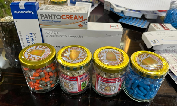 Ngoài ra, đoàn còn phát hiện các sản phẩm viên nang (không nhãn mác), Serum không nhãn phụ tiếng việt, không rõ nguồn gốc xuất xứ.