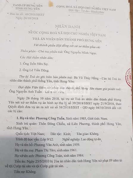 Bản án số 40/2018/HSST ngày 26/10/2018 của TAND TP Hưng Yên