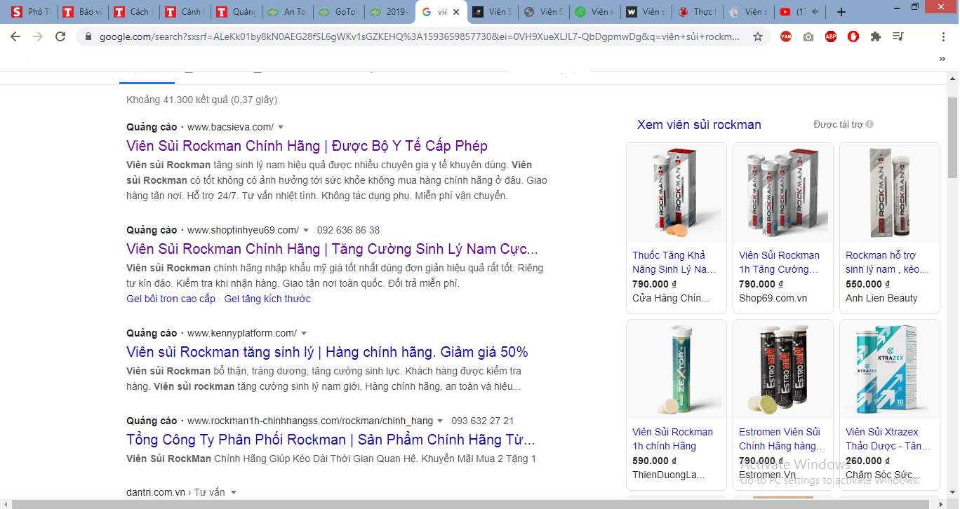 Công cụ tìm kiếm Google cho ra hàng nghìn kết quả về quảng cáo, bán sản phẩm TPBVSK Rockman.Thậm chí, để lấy lòng tin của khách hàng - những người đang rất hoang mang về bệnh lý, tại các website trên quảng cáo có đăng tải và sử dụng hình ảnh của bác sĩ, chuyên gia, để lợi dụng sự uy tín, sử dụng đoạn clip ngắn cắt ghép đưa thương hiệu đài truyền hình thực hiện hành vi quảng cáo vi phạm pháp luật.