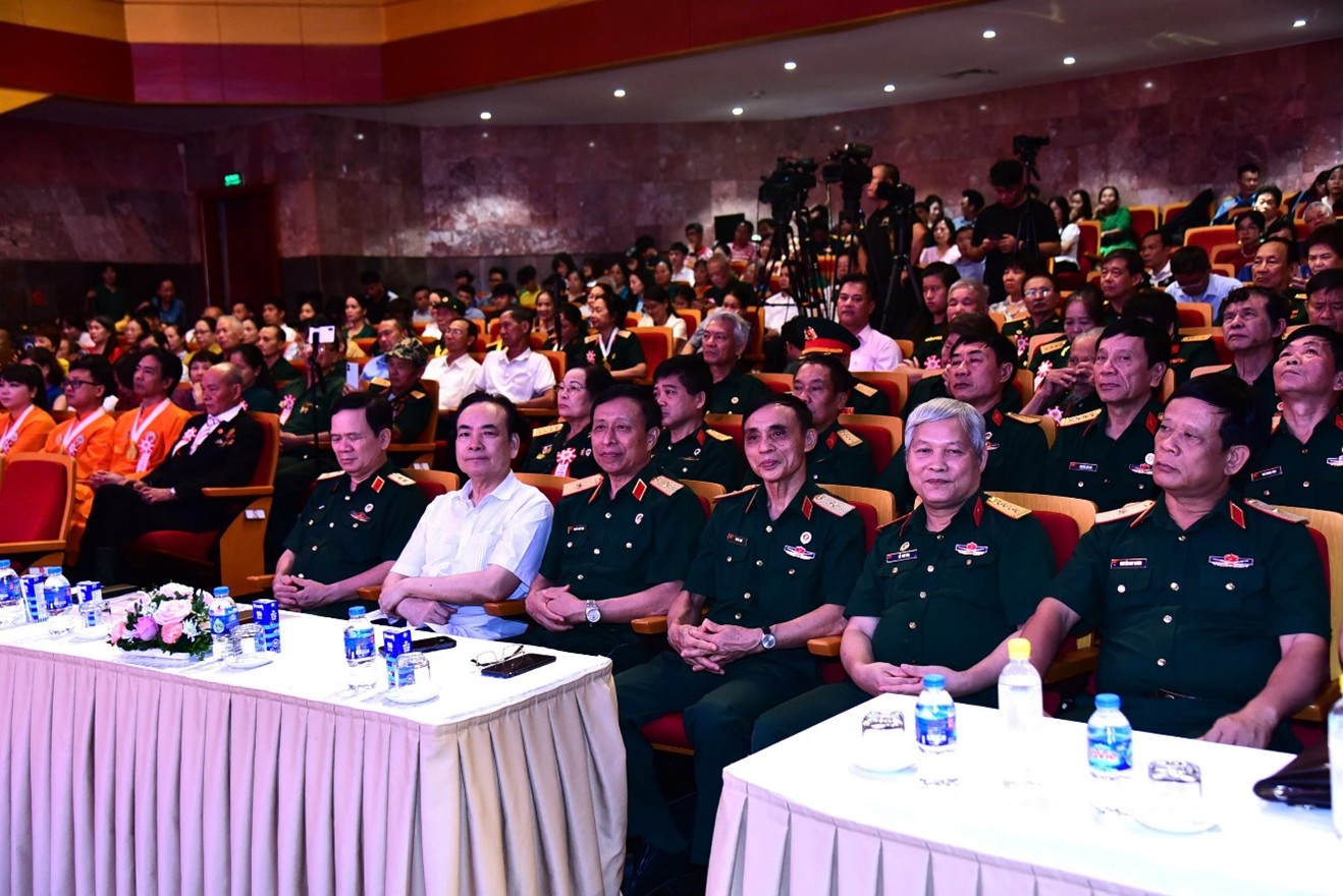 Các đồng chí lãnh đạo Mặt trận Tổ quốc Việt Nam, Bộ Quốc phòng, các ban, ngành Trung ương, các cựu chiến binh, thương binh, bệnh binh, cùng đông đảo đại biểu và nhân dân Thủ đô tham dự Chương trình giao lưu nghệ thuật “Còn mãi với thời gian”.