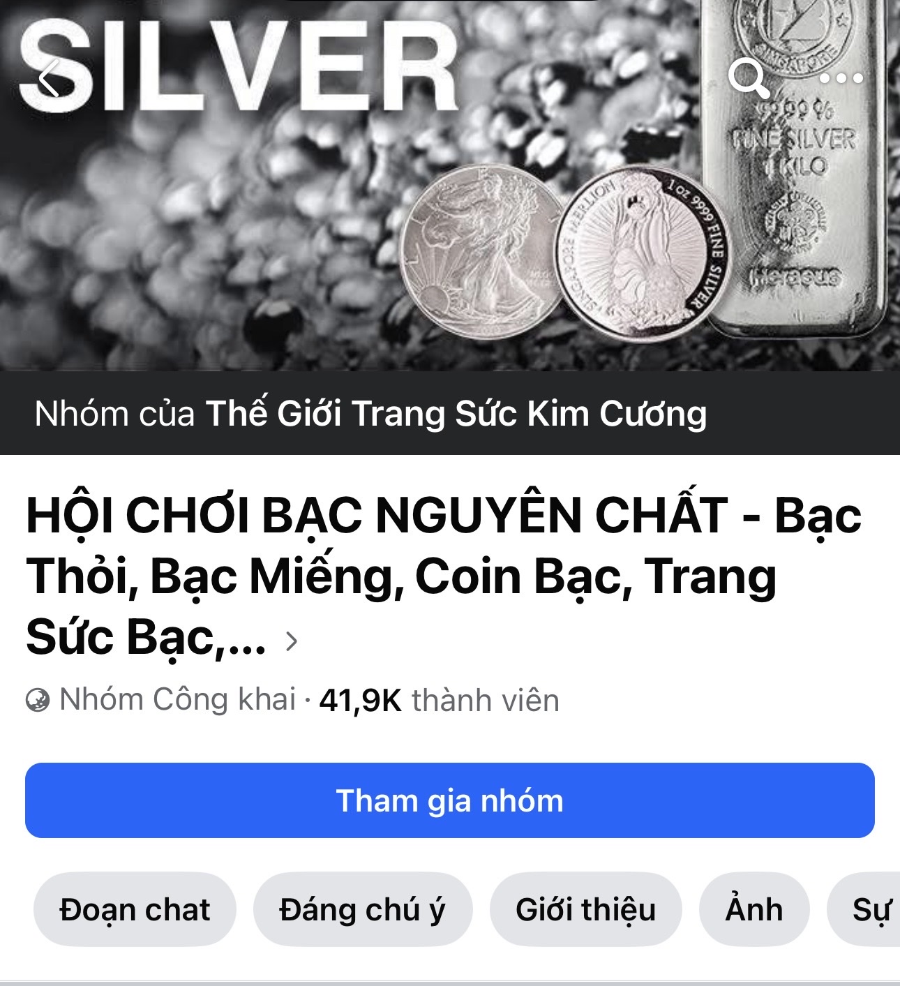 Hiện nay những hôi chơi, mua bán bạc nguyên chất xuất hiện rất nhiều trên mạng xã hội.
