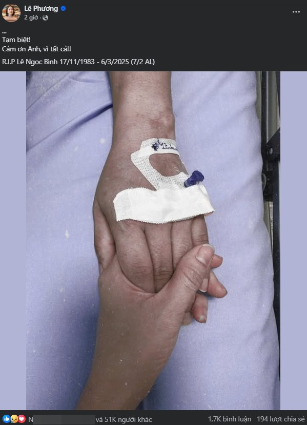 Sau khi Quý Bình qua đời, Lê Phương đăng tải khoảnh khắc nắm chặt tay nam diễn viên cùng chia sẻ: "Tạm biệt. Cảm ơn anh, vì tất cả. R.I.P Lê Ngọc Bình 17/11/1983 - 6/3/2025 (7/2 âm lịch)". Đây là khoảnh khắc cô từng đến thăm anh khi Quý Bình đang ở trong hoàn cảnh hiểm nghèo, sức khoẻ yếu, đến bây giờ mới được tiết lộ.