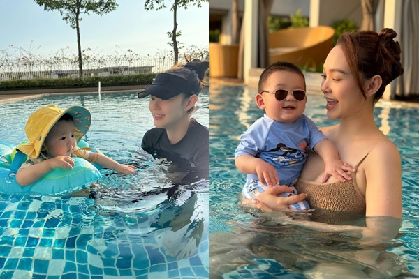 Ngoài ra, người đẹp sinh năm 1987 cho con trai đi tập bơi từ sớm.