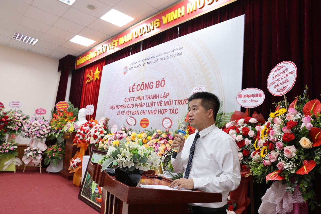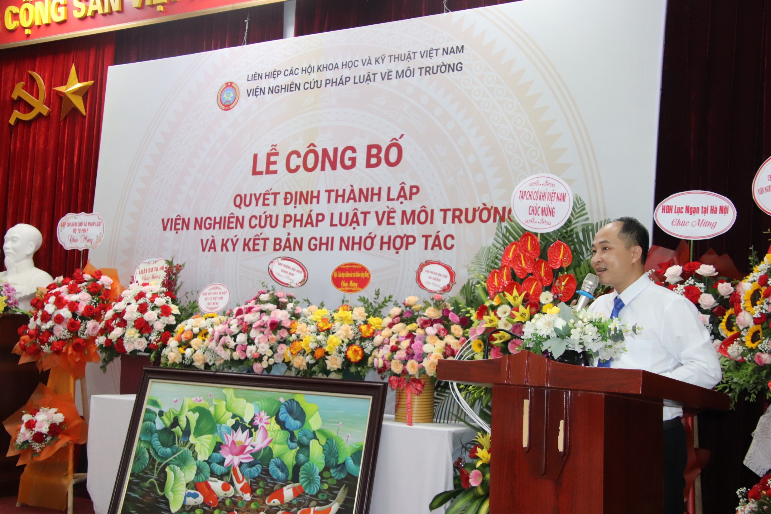 Phát biểu tại buổi lễ, PGS. TS. Luật sư Nguyễn Thế Quyền, Viện trưởng chia sẻ: "Viện Nghiên cứu pháp luật về môi trường được thành lập với mục tiêu xây dựng một cầu nối vững chắc giữa pháp luật và bảo vệ môi trường. Chúng tôi cam kết thực hiện các nghiên cứu chất lượng cao, cung cấp thông tin pháp luật đáng tin cậy và đóng góp tích cực vào quá trình xây dựng một môi trường sống trong lành và bền vững."