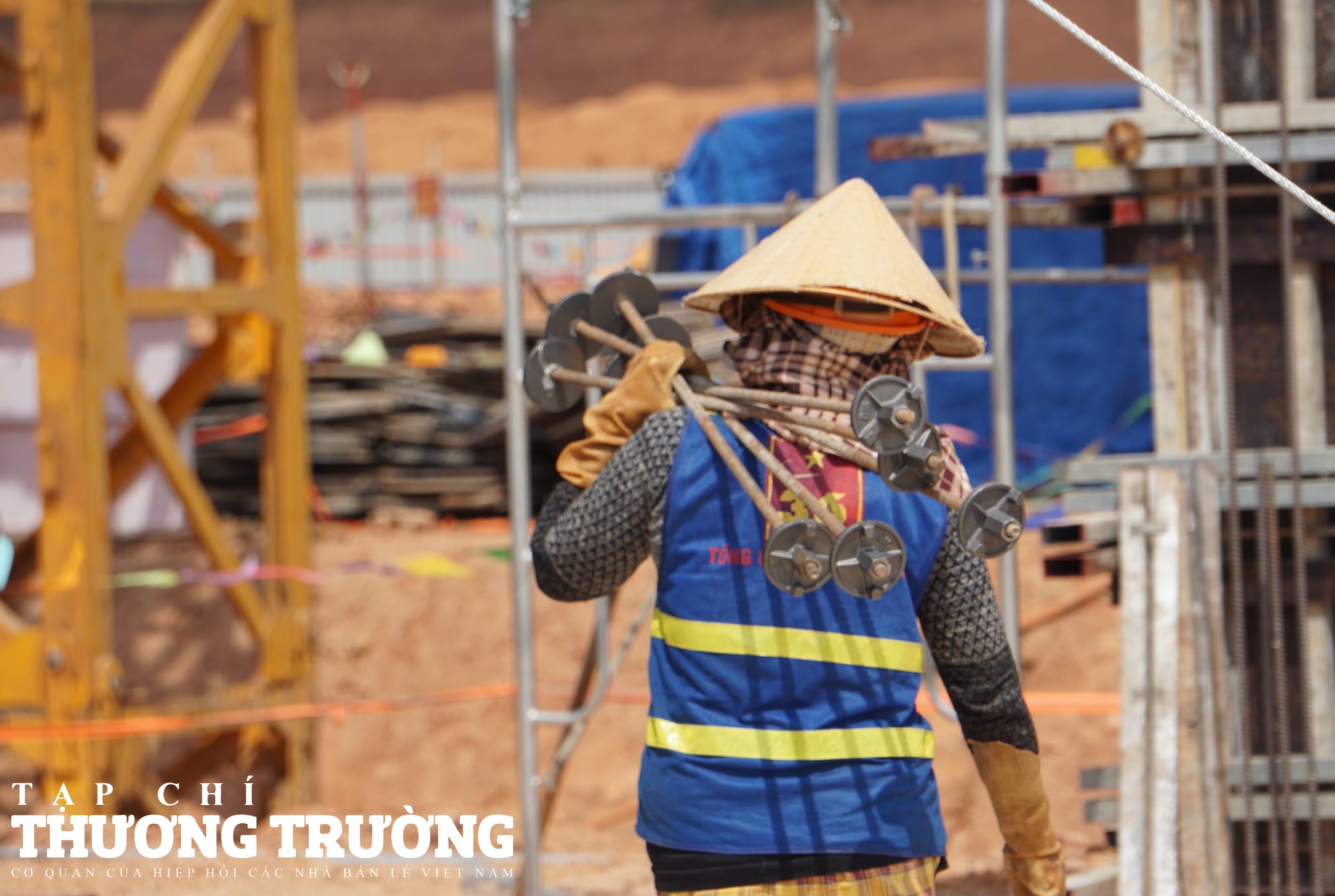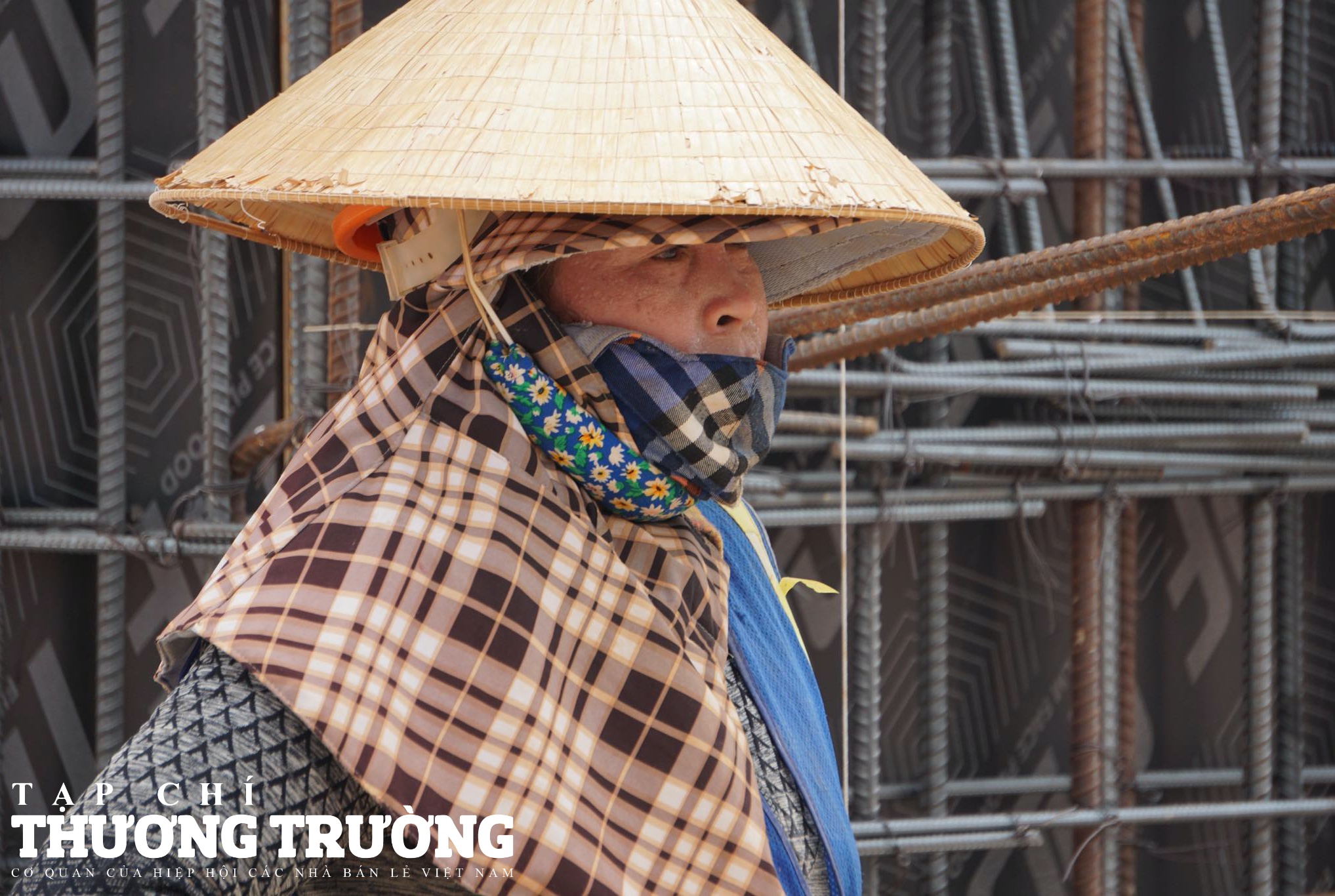 Không chỉ có các anh công nhân nam tại công trường mà các chị em phụ nữ cũng xông xáo làm việc tại đây.