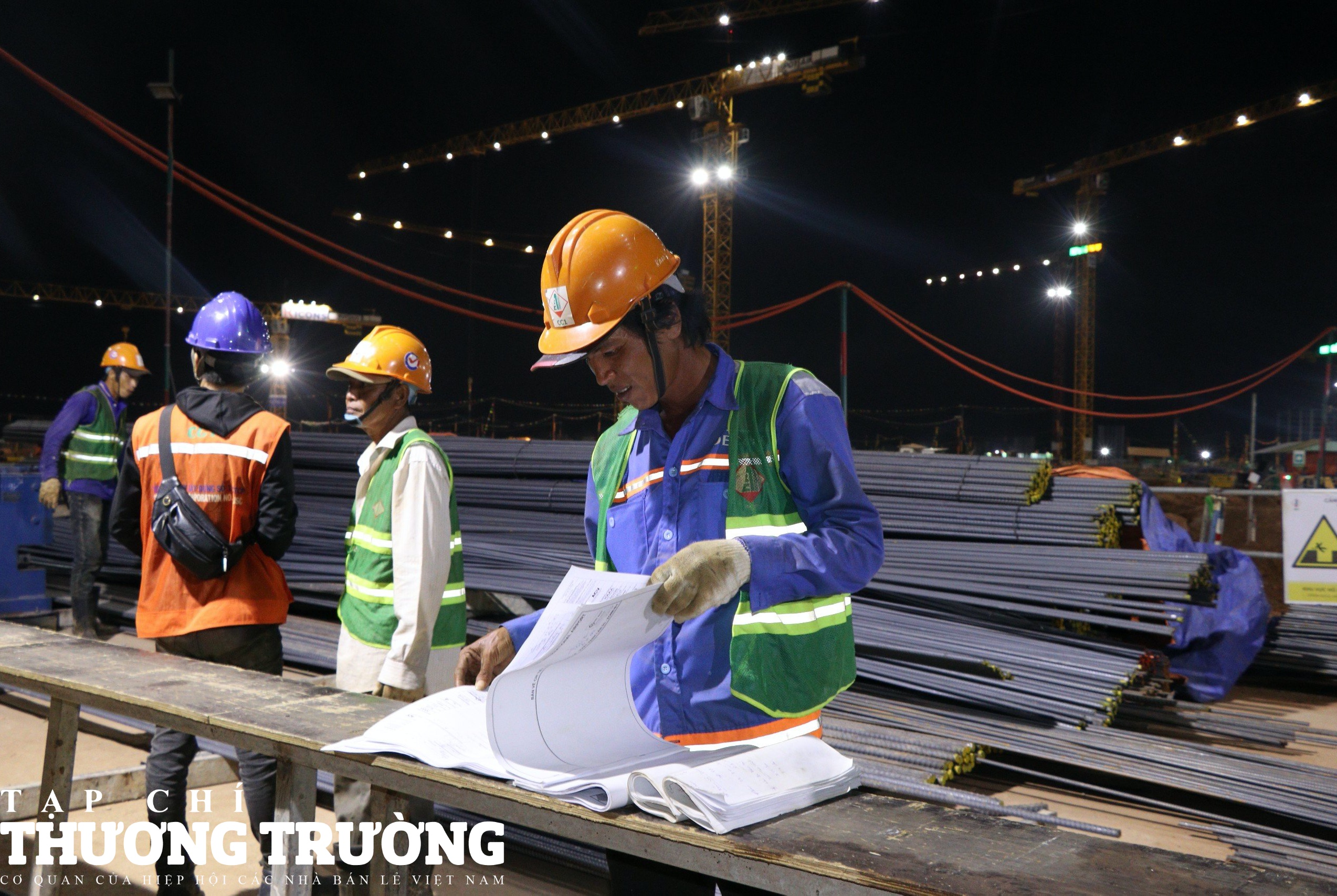 Buổi tối tại công trường, các liên danh nhà thầu đang triển khai thi công.