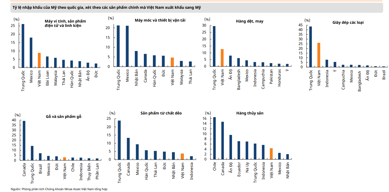Trong báo cáo vĩ mô mới đây, Chứng khoán Mirae Asset cho biết Việt Nam là quốc gia thứ hai, sau Vương quốc Anh (UK), đạt được thỏa thuận sơ bộ về thuế quan với Hoa Kỳ trong khi Trung Quốc hiện chỉ đạt được thỏa thuận khung và cần tiếp tục đánh giá về mức độ tuân thủ. Bên cạnh đó, các đối tác thương mại chủ chốt với Mỹ bao gồm EU, Nhật Bản, Ấn Độ, Hàn Quốc và Canada vẫn đang gặp thách thức trong quá trình đàm phán. Điều này nhấn mạnh vai trò và sức ảnh hưởng ngày càng gia tăng của Việt Nam trong chuỗi cung ứng toàn cầu.