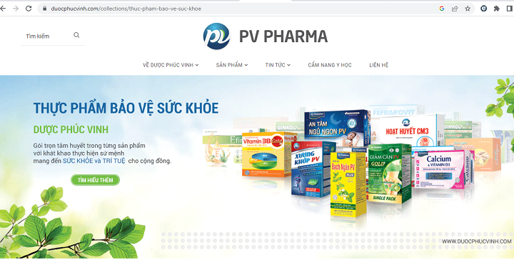 Các sản phẩm trên website của Công ty cổ phần dược Phúc Vinh