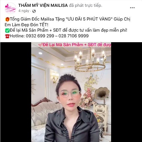 Thẩm mỹ viện Mailisa được quảng cáo là "chuẩn 5 sao"