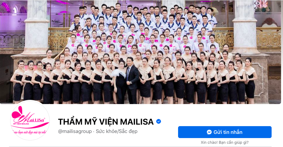 Fanpage mang tên "THẨM MỸ VIỆN MAILISA" hiện đang có tới hơn 2,3 triệu người theo dõi