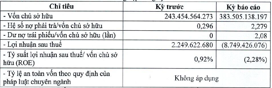 Tuy nhiên, hệ số nợ phải trả/vốn chủ sở hữu từ mức 0,3 lần năm 2022 lên 2,3 lần năm 2023, tương ứng với hơn 882 tỷ đồng nợ phải trả. Dư nợ trái phiếu/vốn chủ sở hữu là 2,08 lần. Theo đó, dư nợ trái phiếu đang chiếm 90,7% nợ phải trả của doanh nghiệp.