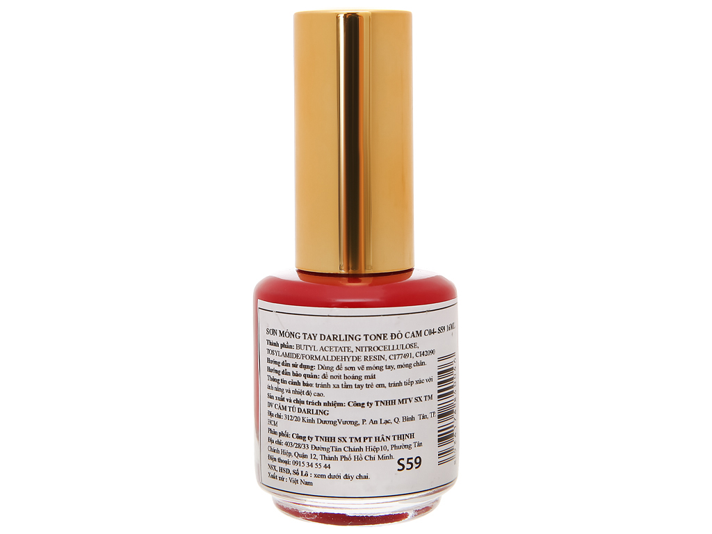 Trước đó, vào tháng 10/2022 Cục Quản lý Dược- Bộ Y tế đã có văn bản thu hồi đối với sản phẩm mỹ phẩm Sơn móng tay Darling Tone đỏ cam 16ml. Cụ thể, trên sản phẩm có Số lô: 0302; NSX: 23/02/22; HSD: 24/02/25; trên nhãn ghi thông tin: “Sản xuất và chịu trách nhiệm: Công ty TNHH MTV SX TM DV Cẩm Tú Darling, địa chỉ: 312/20 Kinh Dương Vương, P. An Lạc, Q. Bình Tân, Tp. HCM; Phân phối: Công ty TNHH SX TM PT Hân Thịnh, địa chỉ: 403/28/33 Đường Tân Chánh Hiệp 10, P. TCH, Q. 12, Tp. Hồ Chí Minh”.