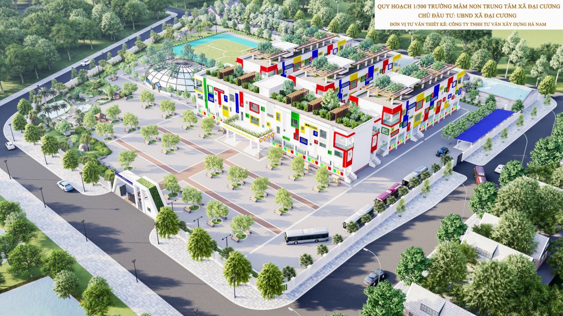 Dự án Trường mầm non trung tâm xã Đại Cương do Công ty TNHH tư vấn xây dựng Hà Nam tư vấn thiết kế.