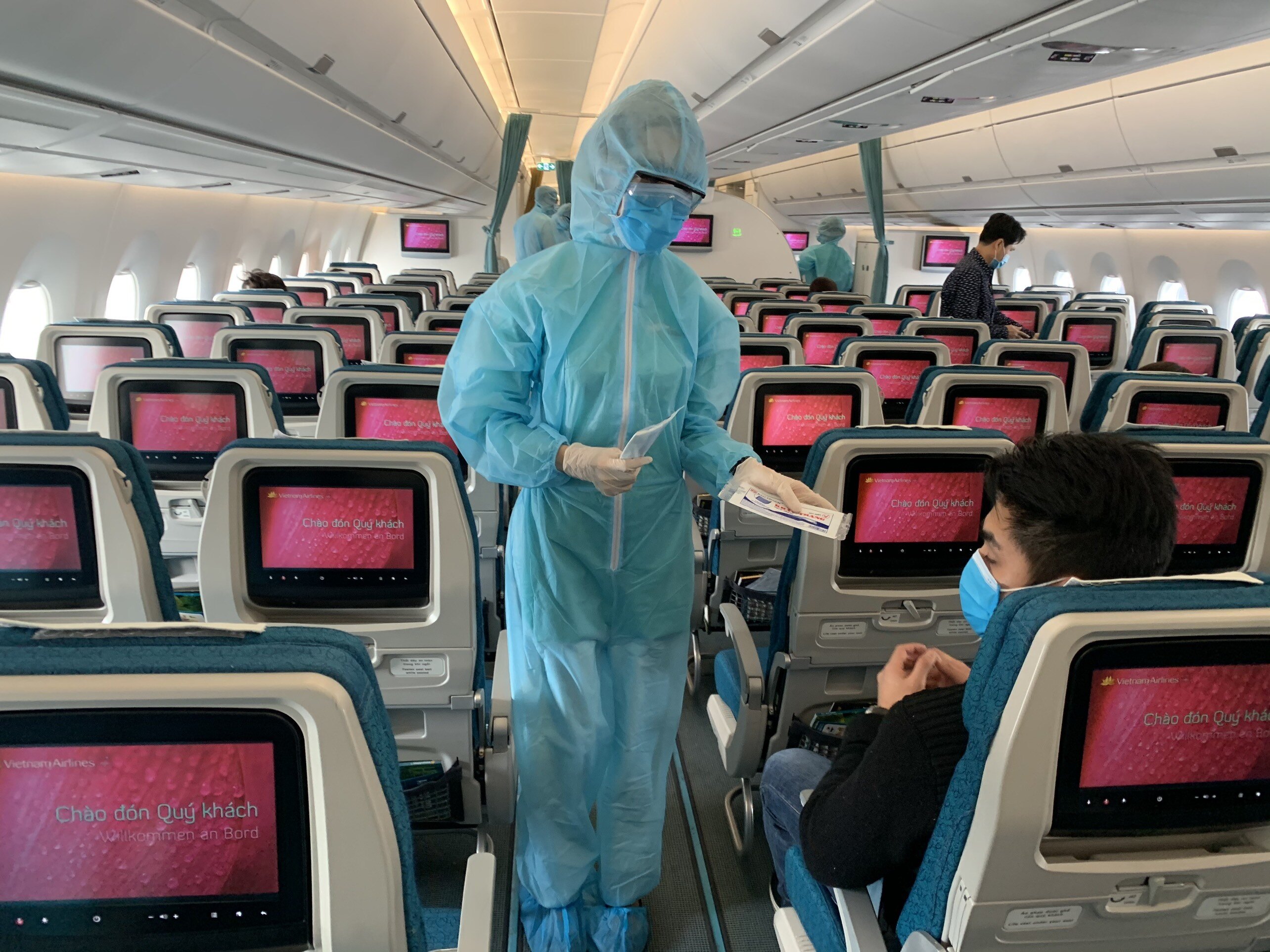Đáng lưu ý, trên tàu bay, Cục Hàng không Việt Nam yêu cầu bố trí hành khách trên một hàng ghế cách nhau ít nhất 1 ghế; đảm bảo khoảng cách tối thiểu 2 mét giữa các hành khách đi xếp hàng làm thủ tục hàng không và lên tàu bay; thực hiện đo thân nhiệt hành khách và khai báo sức khoẻ y tế trước chuyến bay; mọi hành khách phải đeo khẩu trang trong quá trình thực hiện chuyến bay.