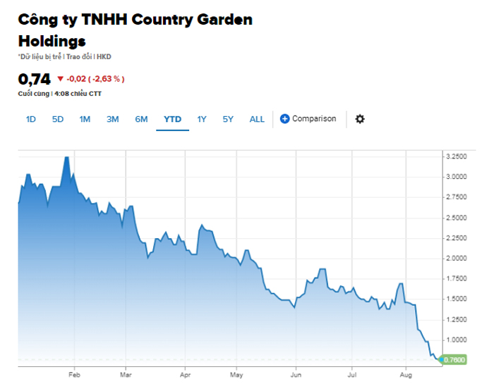 Cổ phiếu của Country Garden tiếp tục lao dốc, giảm hơn 70% kể từ đầu năm đến nay