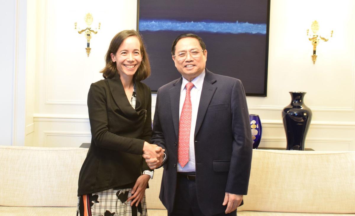 Thủ tướng Phạm Minh Chính cùng bà Aurélia NGUYEN, Giám đốc điều hành Chương trình Tiếp cận vắc-xin toàn cầu COVAX.