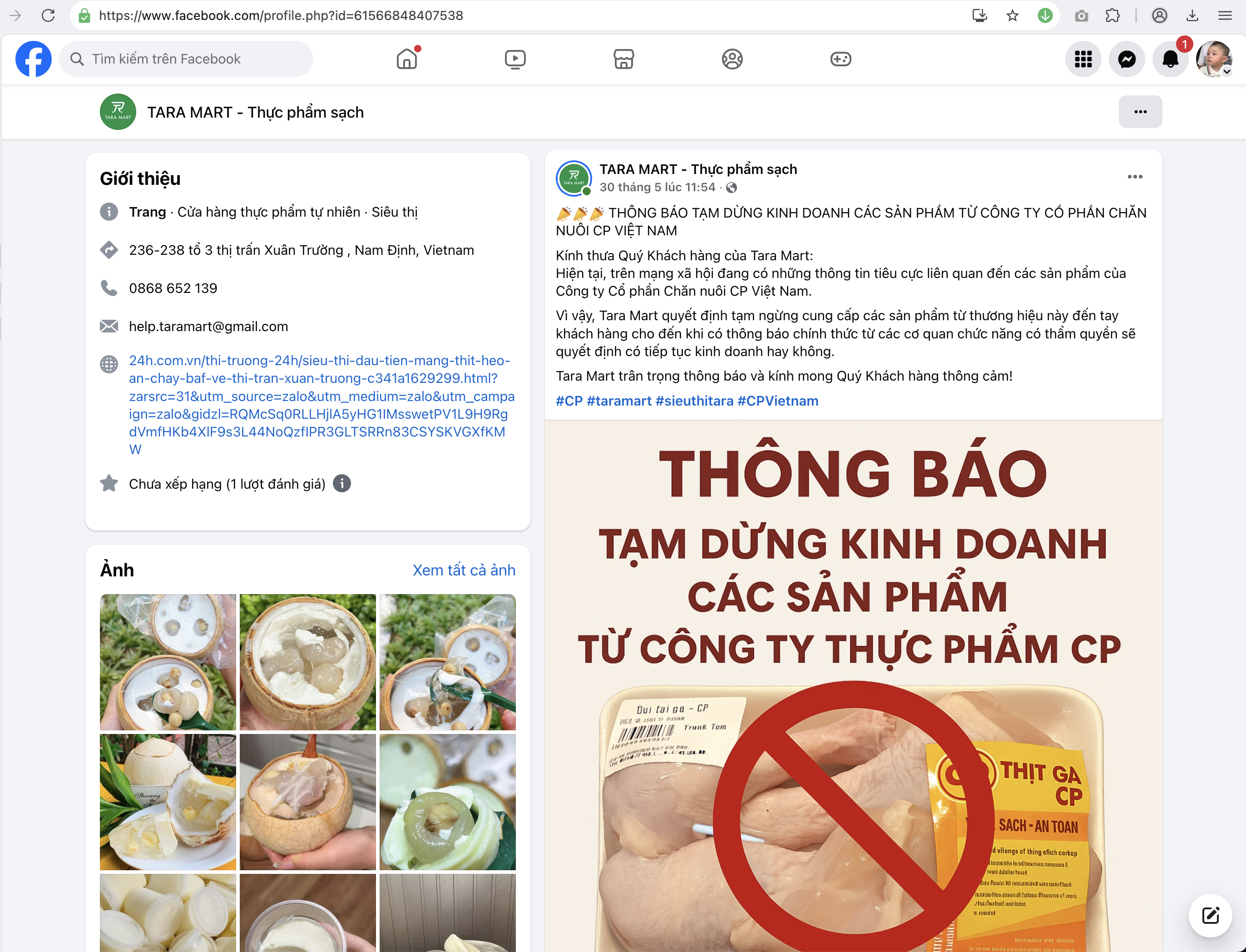 Thông báo này được Tara Mart đăng tải trên trang Facebook chính thức, cho thấy sự thận trọng của doanh nghiệp trong việc bảo vệ quyền lợi và sức khỏe của người tiêu dùng.