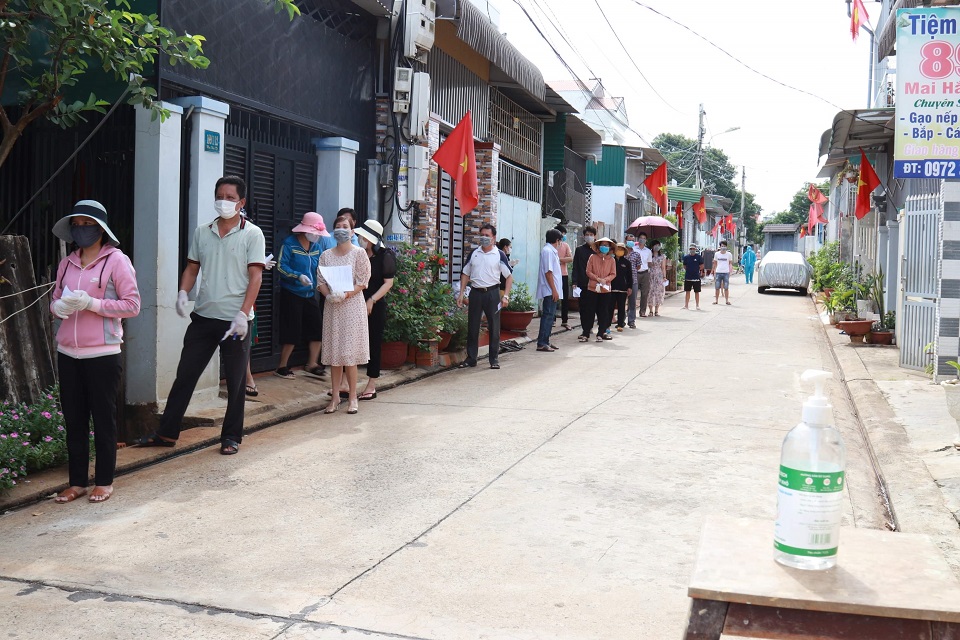 9 giờ sáng 23/5, sau khi hoàn tất công tác chuẩn bị, gần 100 cử tri trong khu vực bị phong tỏa do có 2 ca bệnh Covid-19 ở hẻm 189/1 đường Mai Hắc Đế, phường Tân Thành, TP Buôn Ma Thuột, tỉnh Đắk Lắk đã đi bầu cử đại biểu Quốc hội và HĐND các cấp.