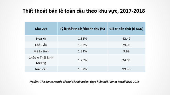 Hãng nghiên cứu uy tín Planet Retail RNG vừa công bố chỉ số thất thoát bán lẻ toàn cầu Sensormatic năm 2018 lên tới 1,82% doanh thu/1 năm, ứng với tổn thất trên phạm vi toàn cầu ước tính 99,56 tỉ USD.