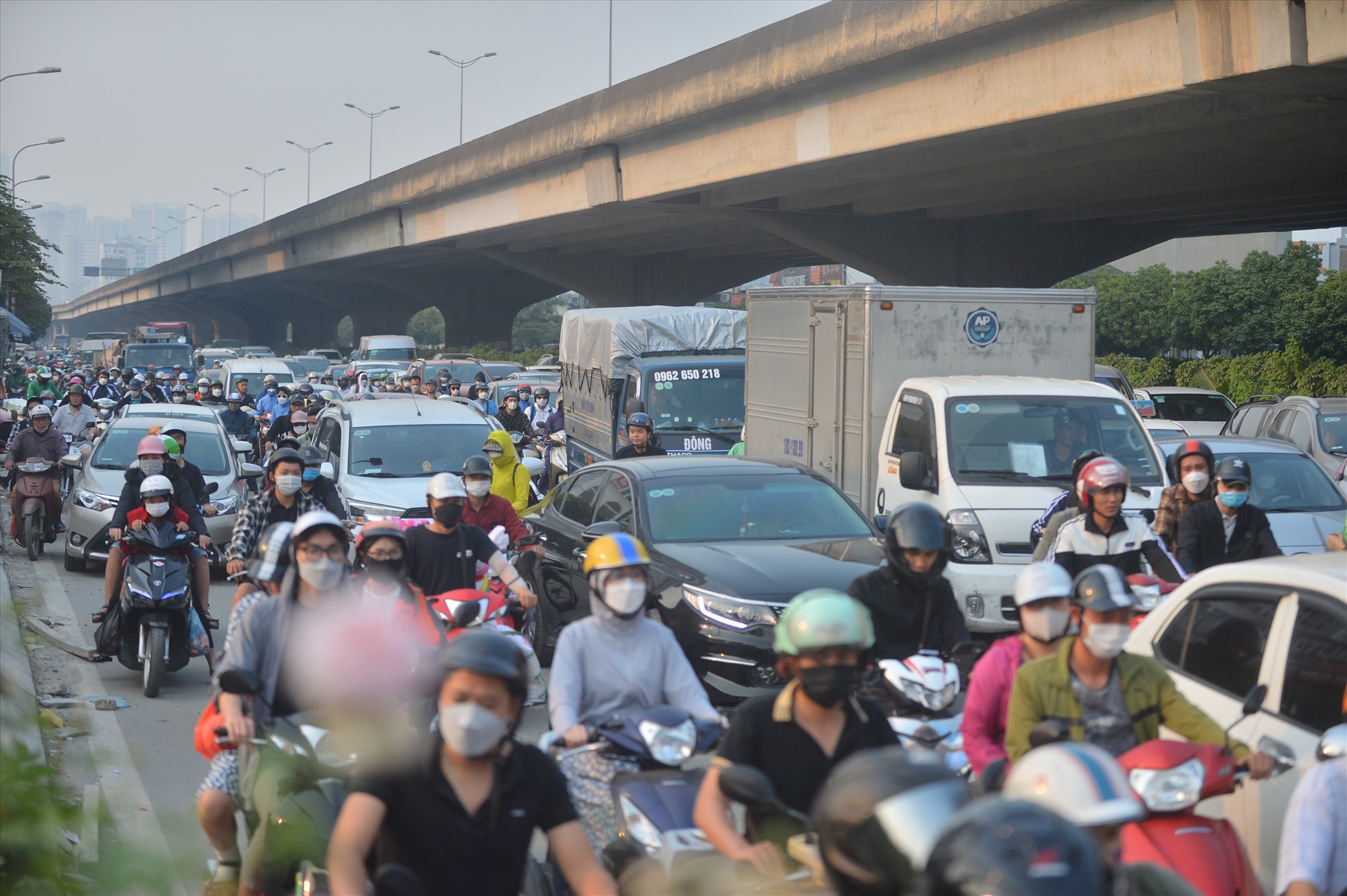Trước đó, gần một tuần sau khi bị rào chắn, tại khu vực thi công dự án hệ thống xử lý nước thải Yên Xá ở trên đường Nguyễn Xiển, tình trạng ùn tắc giao thông không thuyên giảm.
