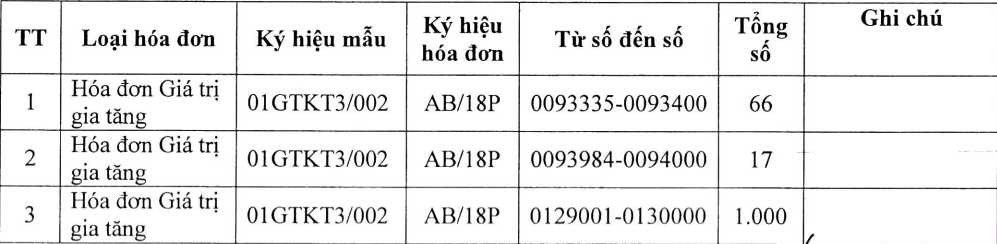 Theo thông báo, các hóa đơn trên sẽ bị hủy và không còn giá trị sử dụng từ ngày 22/6/2020.