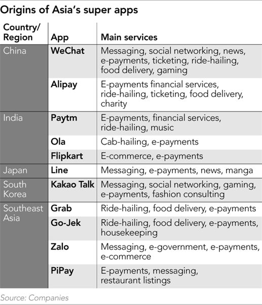 Các siêu ứng dụng phổ biến nhất tại các nước châu Á. Ảnh: Nikkei Asian Review