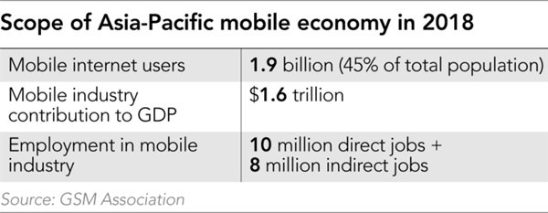 Quy mô ngành ứng dụng di động trong khu vực châu Á - Thái Bình Dương năm 2018. Ảnh: Nikkei Asian Review