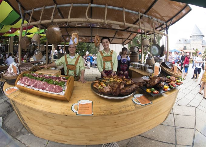Không chỉ đã khát với hương vị bia tươi sánh đậm, mát lịm trên đầu lưỡi, du khách còn được thưởng thức những món ăn thơm ngon, hấp dẫn như thăn bò quay bỏ lò, đùi bê đút lò sốt tiêu, tỏi gà quay, đùi gà đút lò sốt kem nấm, nấm heo sữa nướng muối ớt, heo xiên nướng bia,... Hương thơm tỏa ra từ những gian hàng đồ ăn bày bán ngay tại quảng trường Du Dôme vô cùng quyến rũ, khiến bữa ăn ngày hội thêm tròn vị.