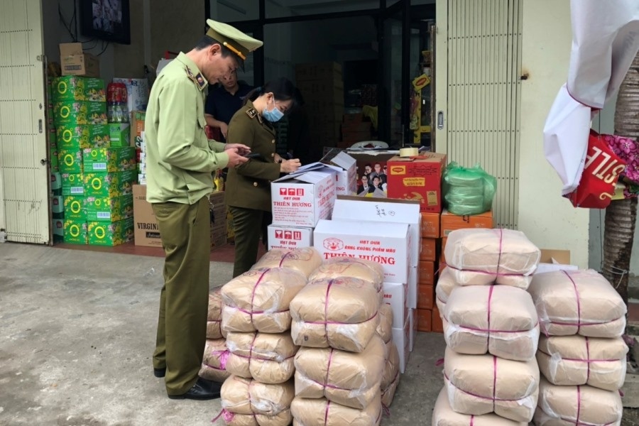 Tại thời điểm kiểm tra, lực lượng QLTT phát hiện cửa hàng đang bày bán một số lượng lớn hạt dưa không có hóa đơn, chứng từ kèm theo chứng minh tính hợp pháp của hàng hóa, trên bao bì sản phẩm gắn dấu hiệu “Thiên Hương”, có dấu hiệu là hàng hóa giả mạo nhãn hiệu “Thiên Hương” đã được đăng ký bảo hộ.