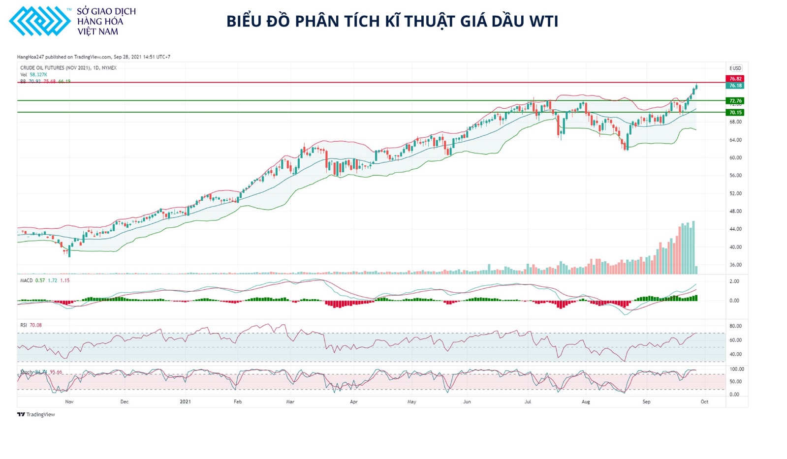 Biểu đồ phân tích kỹ thuật giá dầu WTI (Nguồn: Sở giao dịch Hàng hóa Việt Nam)