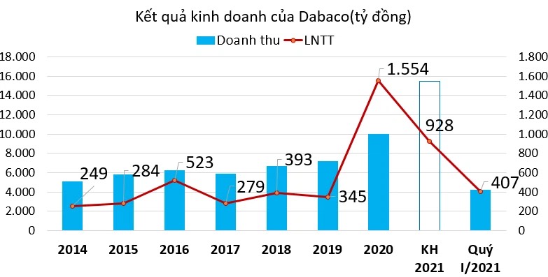 Kết quả kinh doanh của Dabaco. (Nguồn: Tổng hợp từ BCTC của DBC).