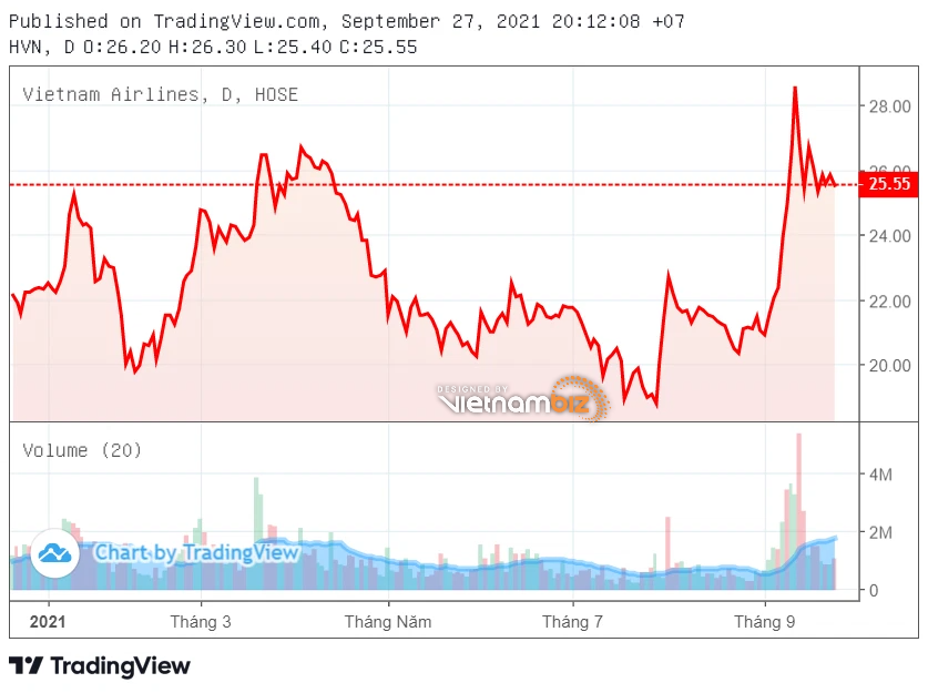 Diễn biến giá cổ phiếu HVN trong 9 tháng qua. (Nguồn: TradingView).