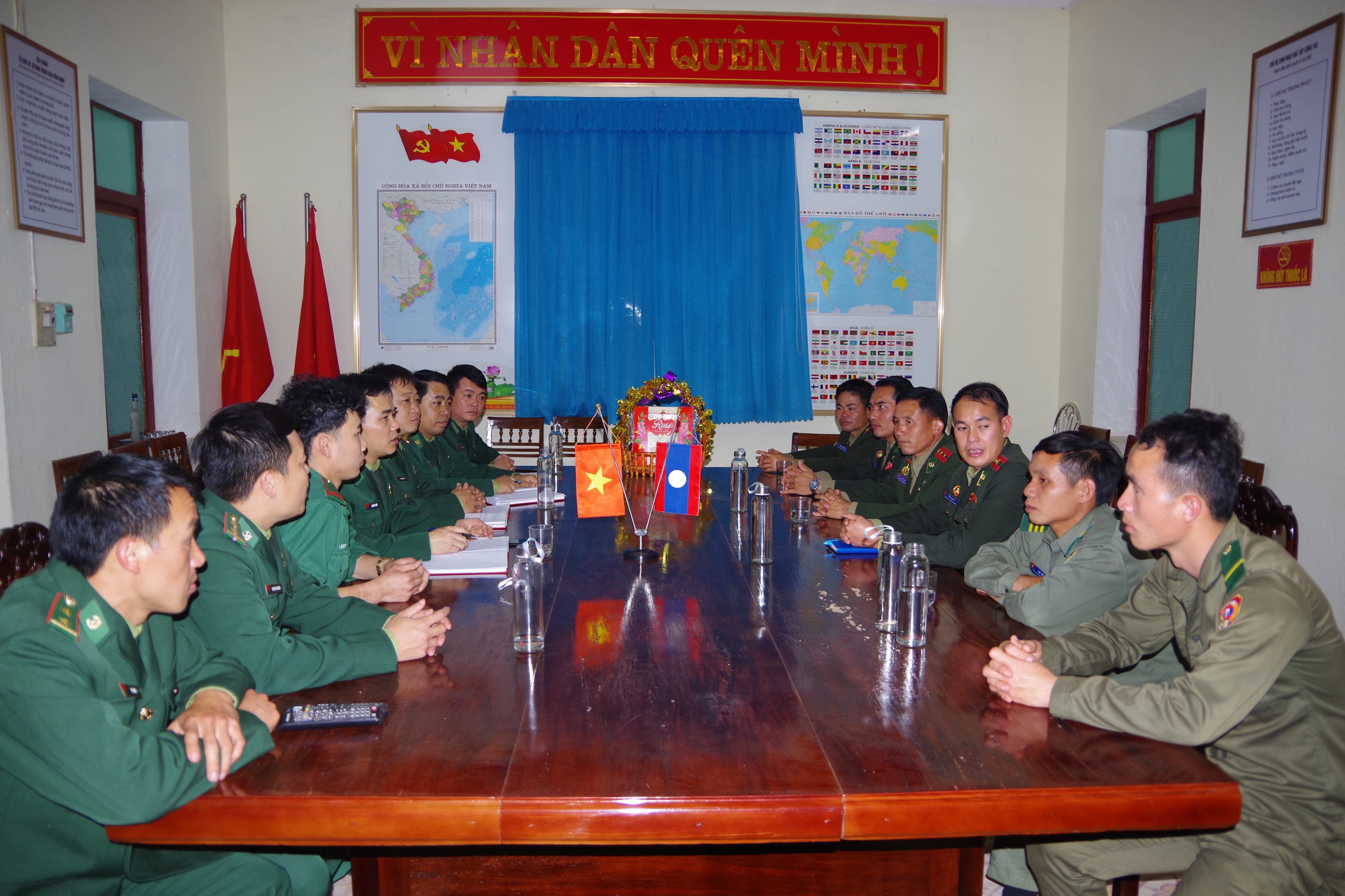 Đại đội 217 (Bộ chỉ huy Quân sự tỉnh Hủa Phăn, Lào) trao đổi tình hình quản lý bảo vệ biên giới với Đồn BP Mỹ Lý (BĐBP tỉnh Nghệ An).