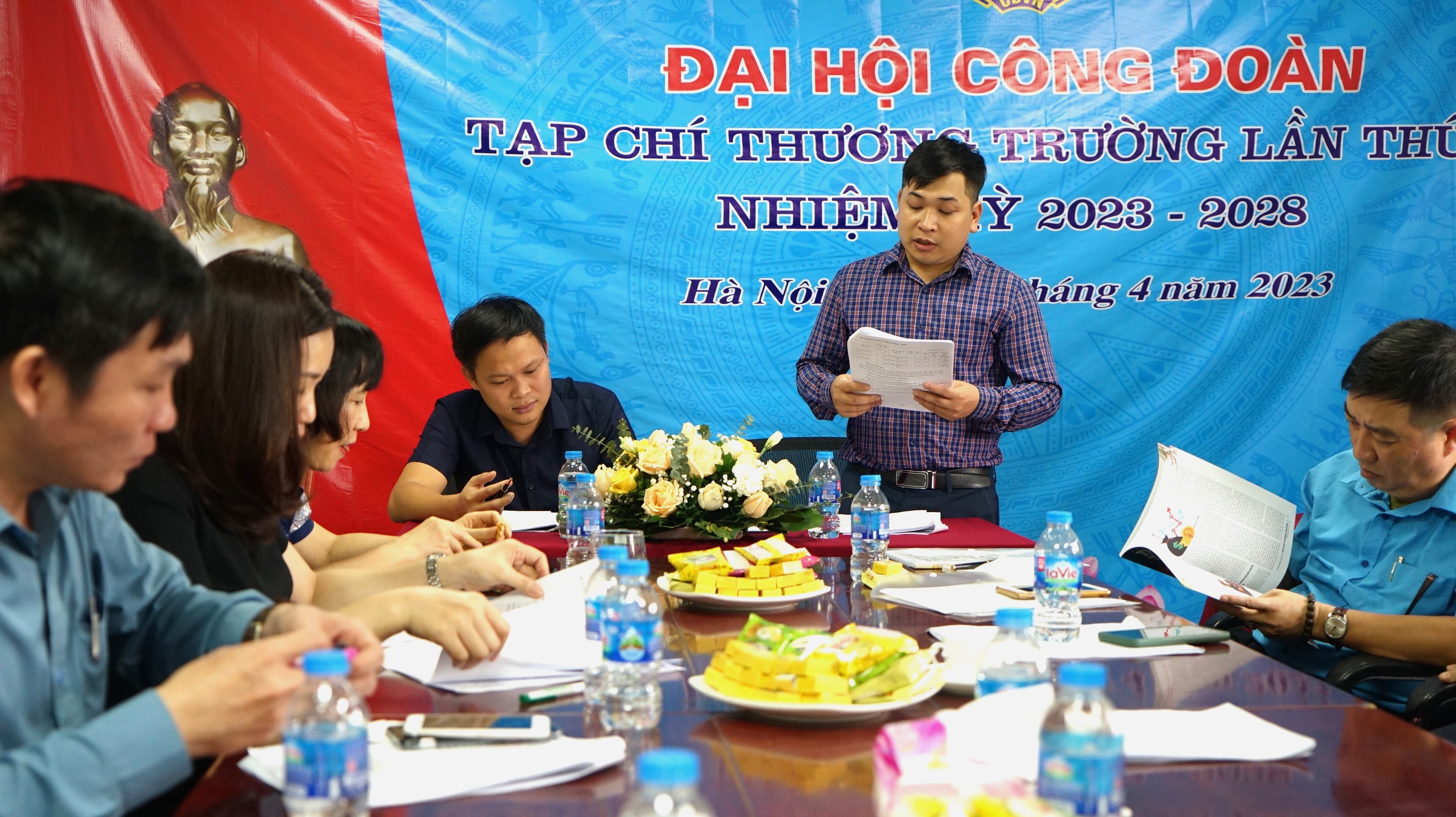 Đồng chí Đinh Văn Phương - Chủ tịch Công đoàn Tạp chí Thương Trường nhiệm kỳ 2017-2022 đọc báo cáo tại Đại hội.