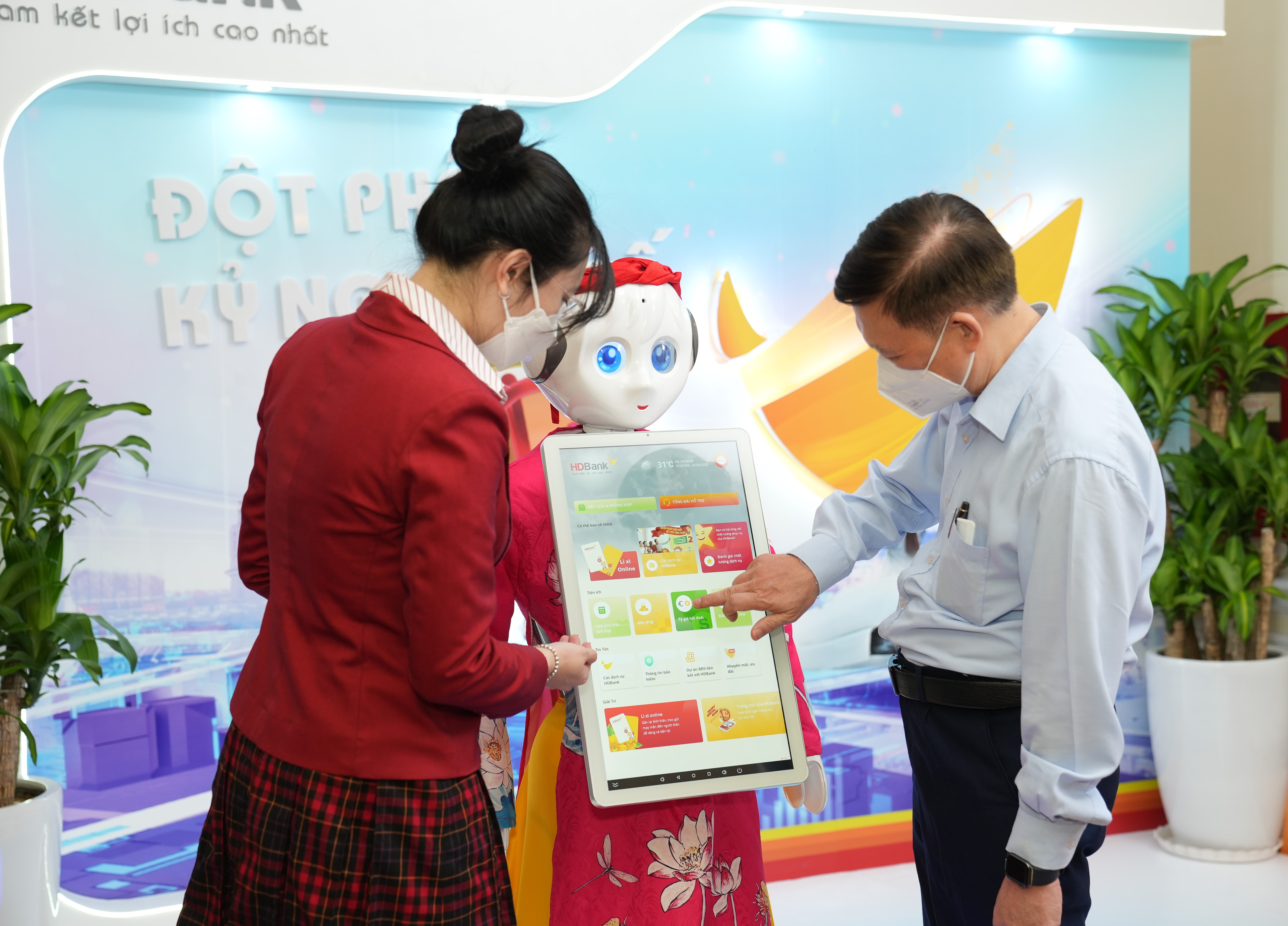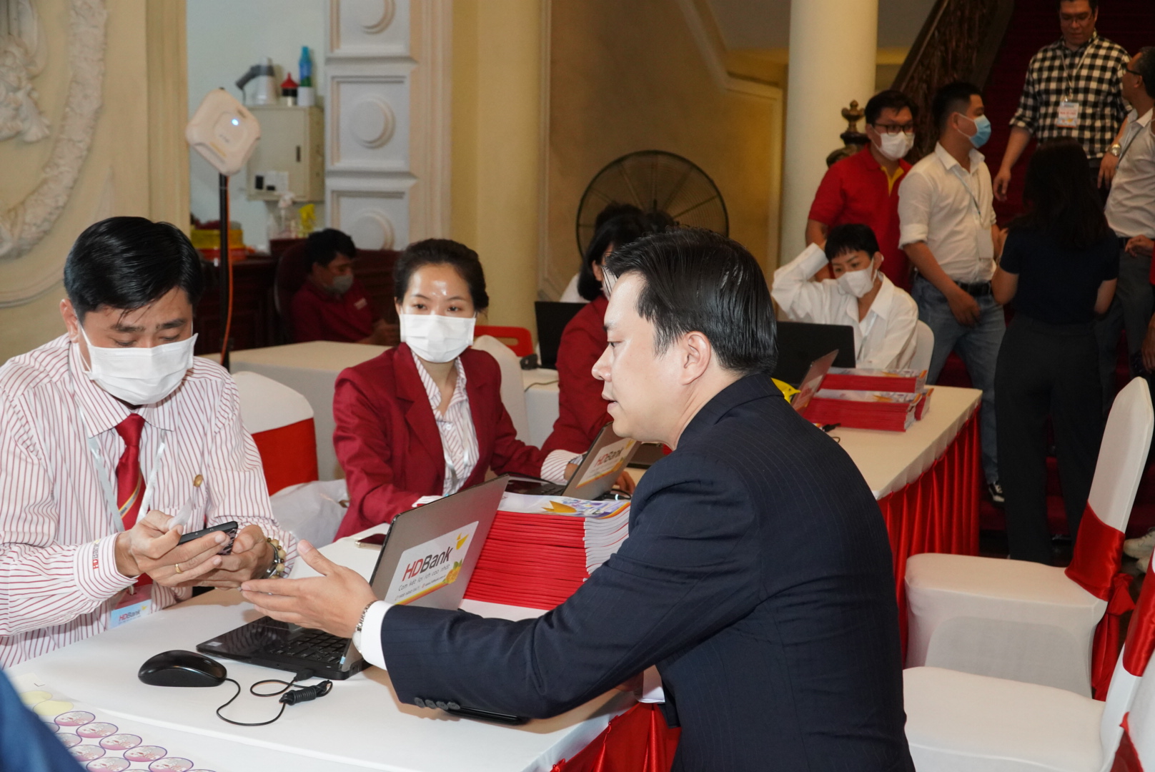 Các cổ đông đến tham dự và trải nghiệm dịch vụ ứng dụng công nghệ chuyển đổi số của HDBank tại Đại hội đồng cổ đông thường niên 2022