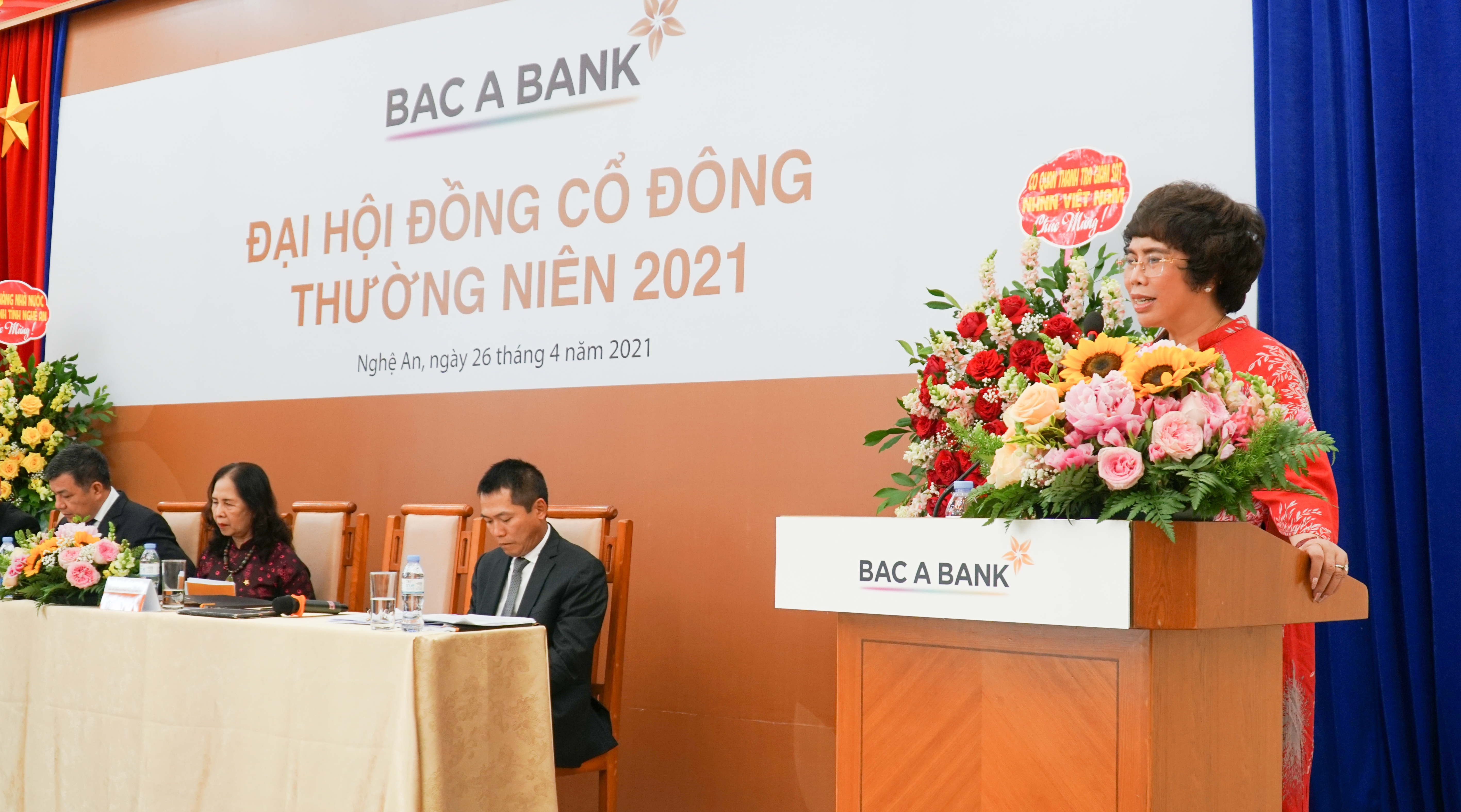 Ngày 26/4/2021, Ngân hàng TMCP Bắc Á (BAC A BANK) đã tổ chức thành công Đại hội đồng cổ đông thường niên 2021 tại Cửa Lò, Nghệ An với sự tham dự của các cổ đông cùng đại diện Ngân hàng Nhà nước; Hội đồng Quản trị, Ban Kiểm soát, Ban Điều hành và đại diện CBNV BAC A BANK. Đại hội đã thông qua Báo cáo tổng kết kết quả kinh doanh năm 2020 và định hướng kế hoạch kinh doanh năm 2021; Phương án tăng vốn điều lệ năm 2021 cùng nhiều chỉ tiêu quan trọng khác.