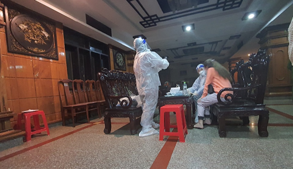 Lực lượng y tế tiến hành test nhanh COVID-19 cho nhân viên tại cơ sở massage Windy Hotel