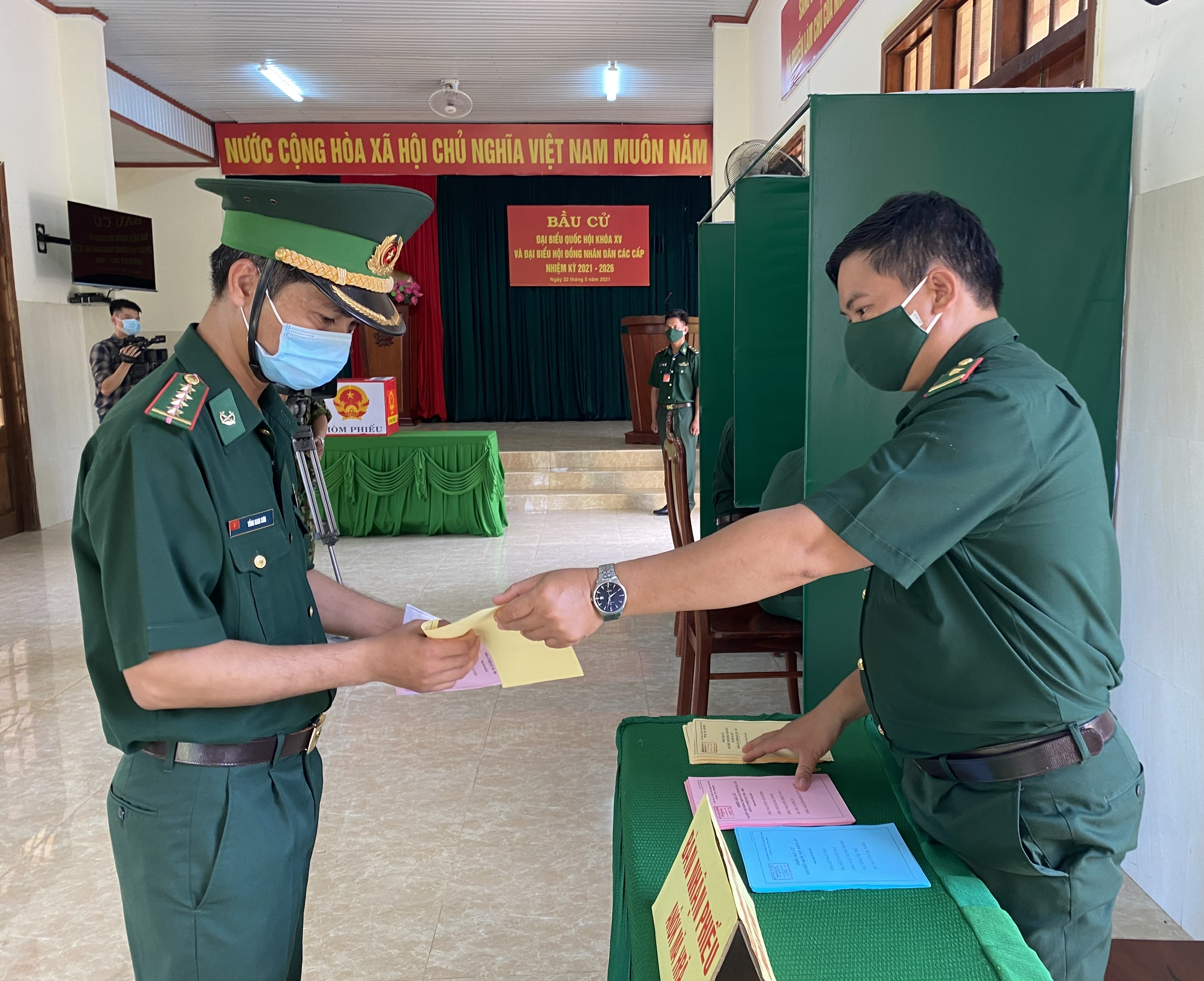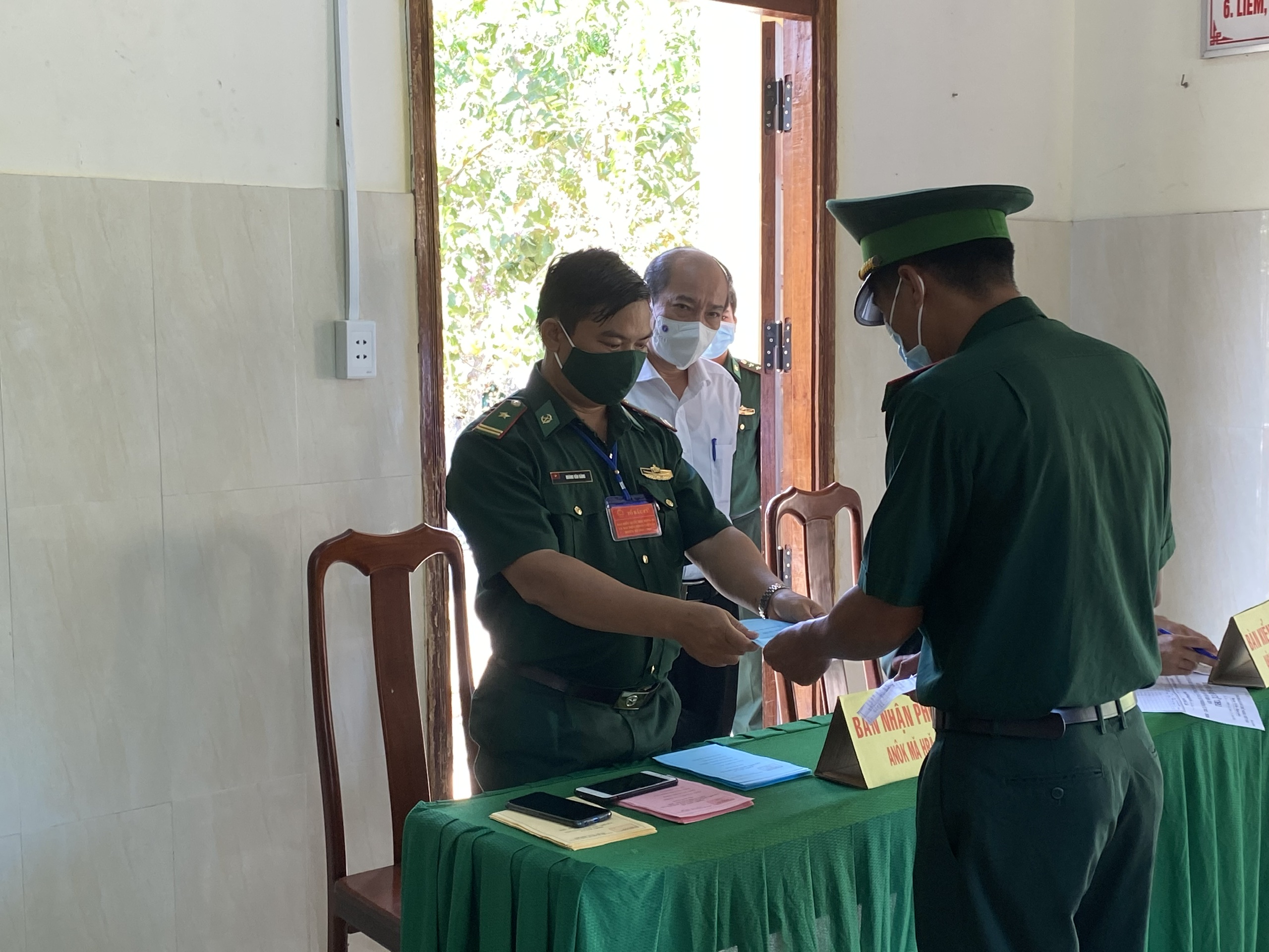 Cử tri bỏ phiếu bầu Đại biểu Quốc hội và HĐND các cấp tại Đồn biên phòng cửa khẩu Đắk Ruê.