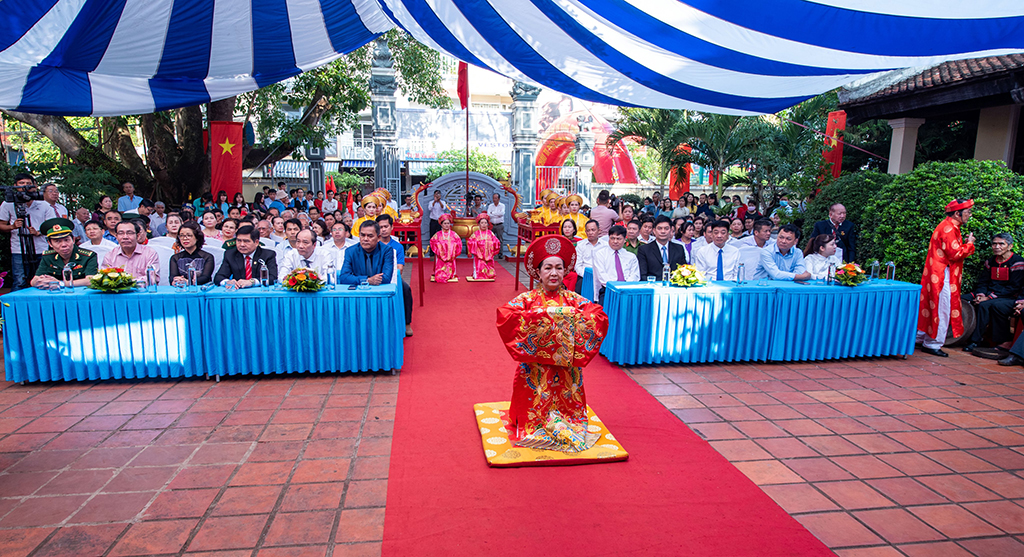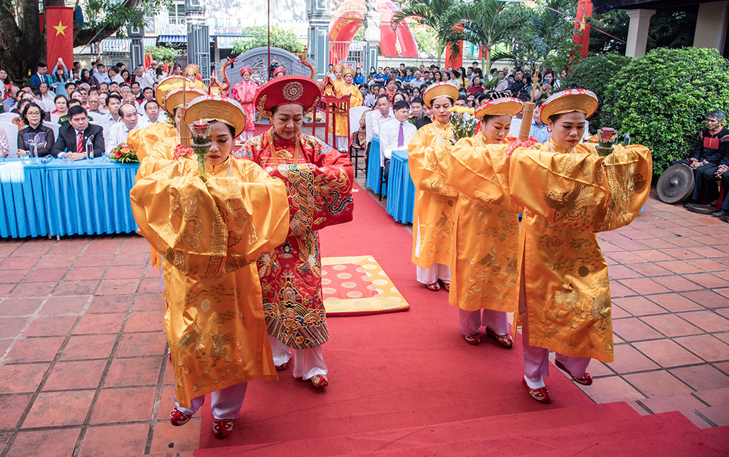 Trong không khí thiêng liêng, trang trọng, các nghi thức, nghi lễ được tái hiện về lịch sử hào hùng của các vị Vua Hùng thời dựng nước, lịch sử đấu tranh giành độc lập dân tộc; lễ dâng vật phẩm, lễ dâng hương, hoa lên bàn thờ Vua Hùng…