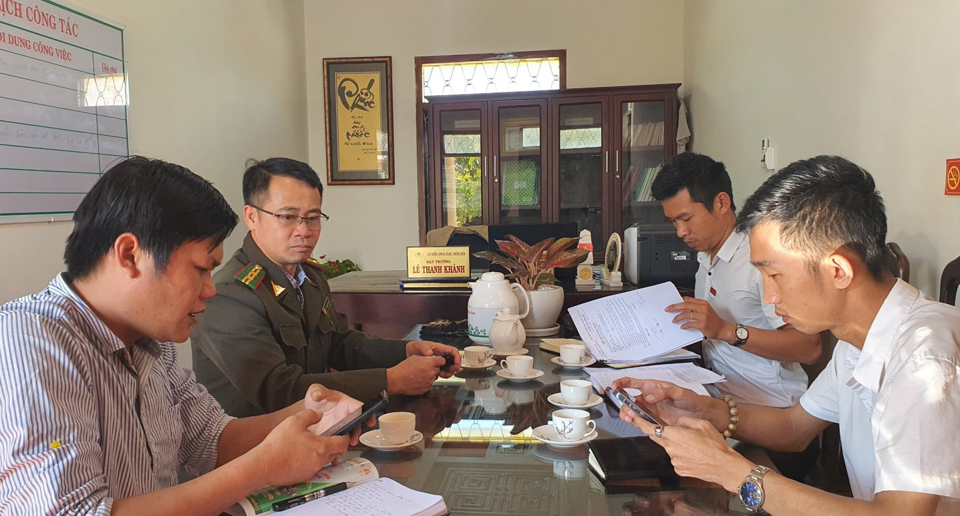 Phóng viên làm việc với lãnh đạo Hạt kiểm lâm huyện Ea Hleo.
