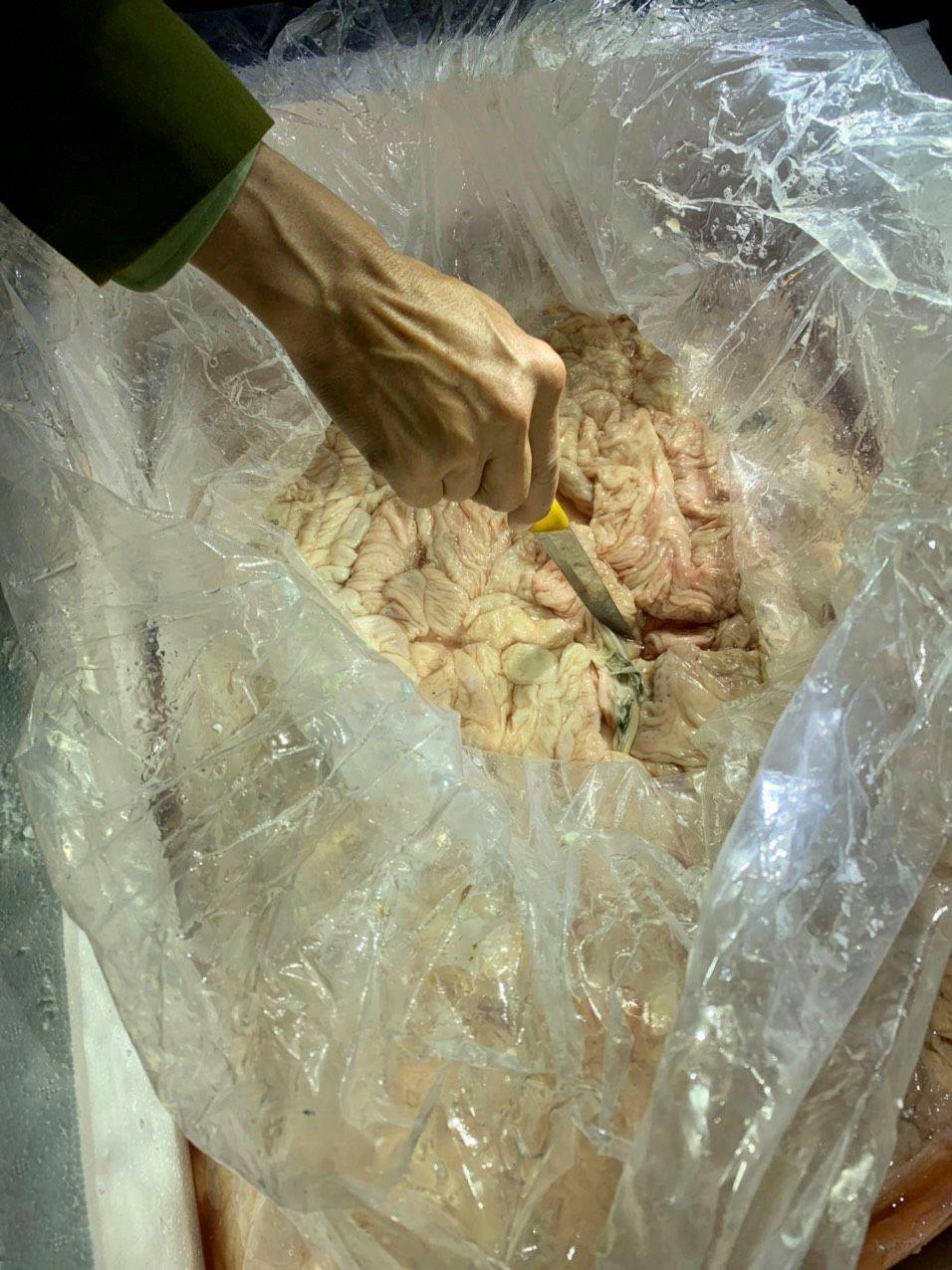 Toàn bộ số lòng heo được cất giữ trong cốp xe khách.