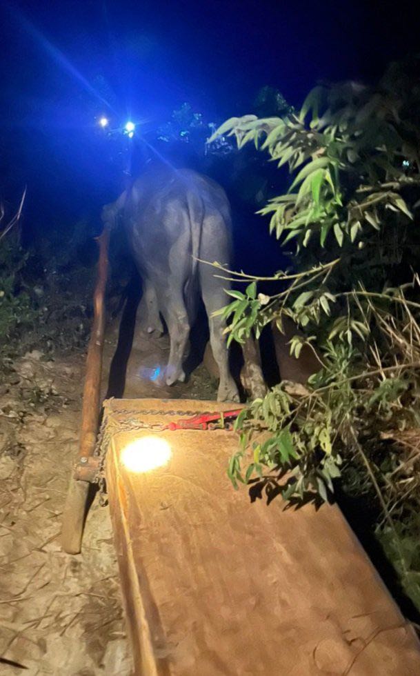 Nhóm lâm tặc dùng trâu để kéo gỗ lậu.