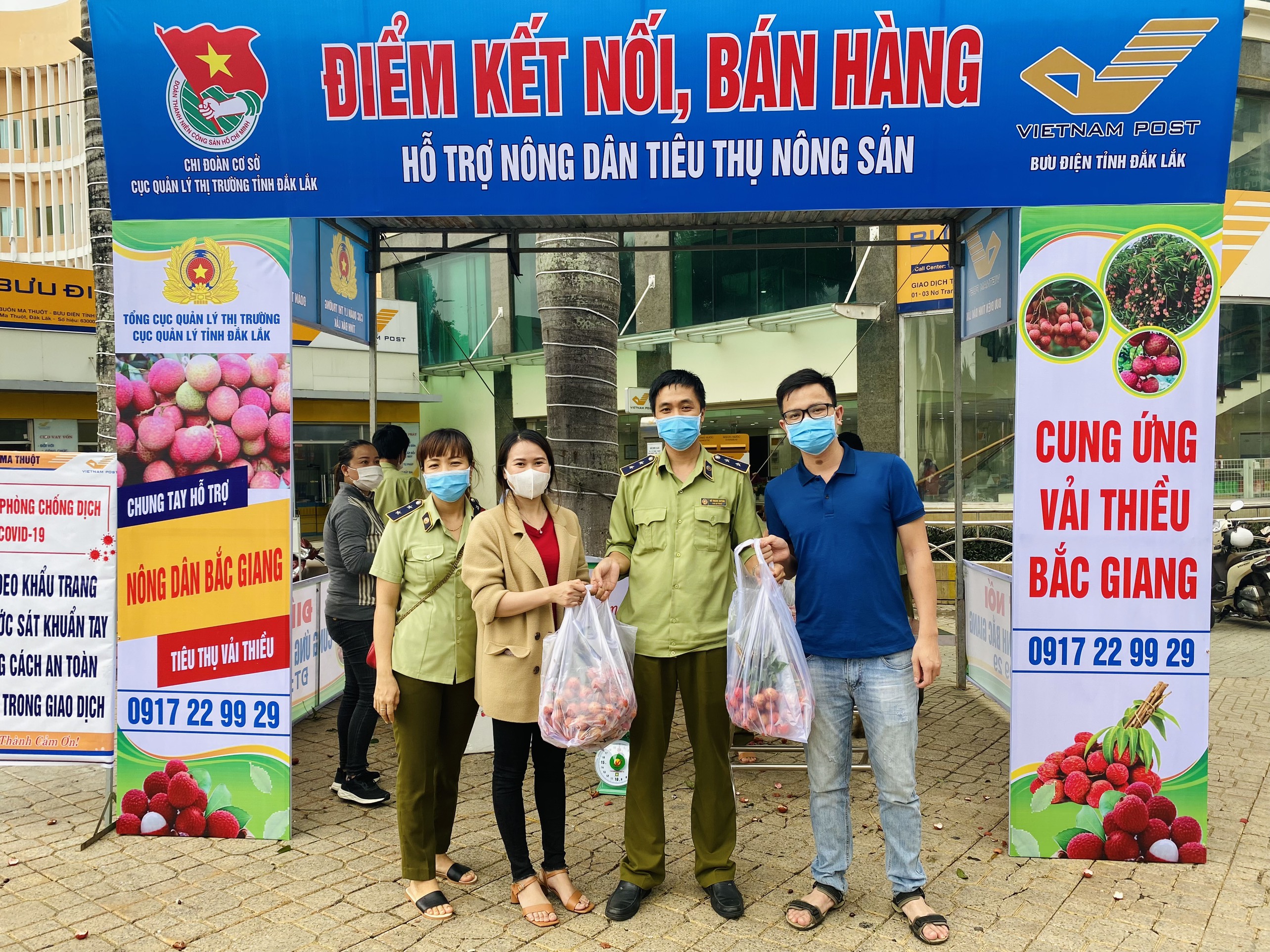 30 tấn vải thiều đầu tiên đã được vận chuyển về Đắk Lắk vào ngày 12/06, đến nay việc kết nối và tiêu thụ đã thành công. Lượng lớn vải thiều được tiêu thụ theo hình thức kết nối với các siêu thị, cửa hàng tại các chợ đầu mối và các thương nhân phân phối nông sản. Bên cạnh đó Chi đoàn thanh niên Cục Quản lý thị trường và Chi đoàn thanh niên Bưu điện tỉnh tổ chức bán lưu động tại điểm bán Trung tâm Ngã Sáu thành phố Buôn Ma Thuột. Tuy nhiên, theo ông Mai Mạnh Toàn Cục trưởng Cục Quản lý thị trường tỉnh Đắk Lắk: Để đảm bảo an toàn đối với công tác phòng, chống dịch trong giai đoạn dịch bệnh đang diễn biến hết sức phức tạp hiện nay chúng tôi hạn chế tiêu thụ qua hình thức tổ chức các điểm bán lưu động mà sẽ tập trung kết nối với các trung tâm thương mại, siêu thị, chợ đầu mối và các thương nhân. Qua đây Cục Quản lý thị trường tỉnh Đắk Lắk và Bưu điện tỉnh Đắk Lắk cũng chia sẻ và hy vọng đã góp phần giảm bớt áp lực và gánh nặng cho việc tiêu thụ nông sản của bà con Nhân dân các địa phương đang phải chịu ảnh hưởng của dịch bệnh.