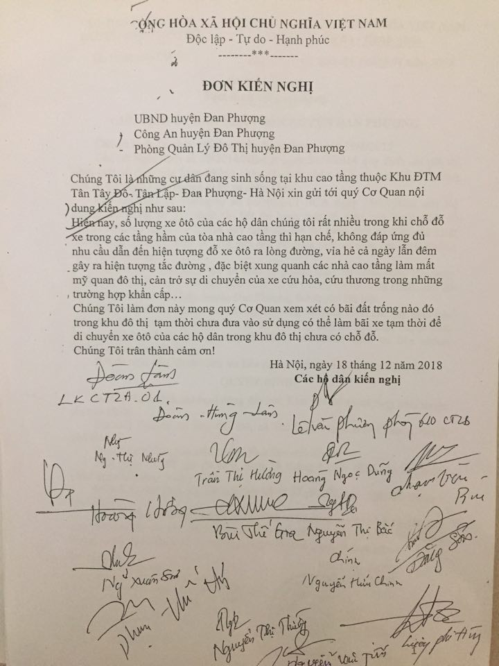 Trao đổi qua điện thoại, ông Nguyễn Văn Khanh – Trưởng Công an huyện Đan Phượng cho biết, “Công an huyện cũng đã có công văn gửi UBND huyện Đan Phượng, đề nghị UBND huyện sắp xếp do KĐT Tân Tây Đô một bãi để xe do xe để tràn lan ra đường và vỉa hè. Qua khảo sát, ý kiến người dân tại KĐT Tân Tây Đô có một bãi đất trống chưa xây dựng nhưng được đổ rất nhiều chất thải. Công an huyện cũng đề nghị BQL thu dọn, đồng thời đề nghị UBND huyện Đan Phượng cấp phép tạm thời tại đó”.