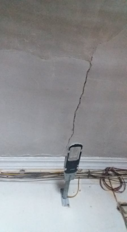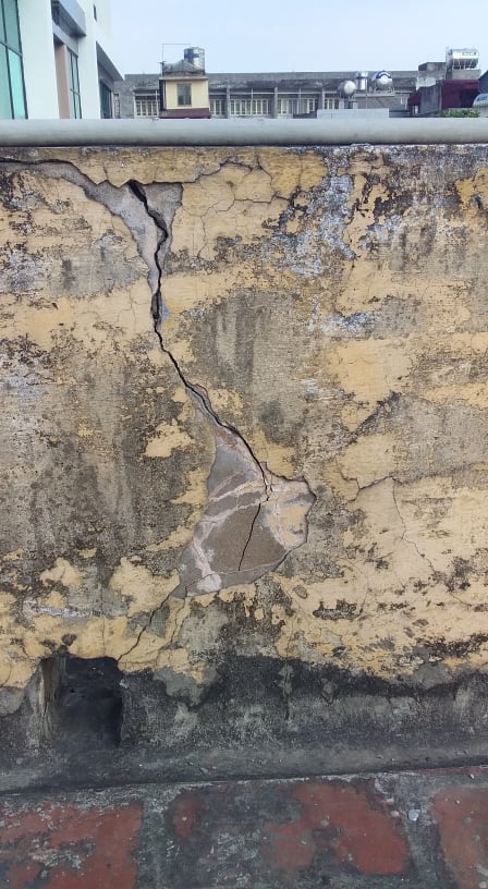 Khu tập thể A2 xuất hiện nhiều các vết nứt lớn khiên cư dân sinh sống hoang mang (ảnh: ĐP)