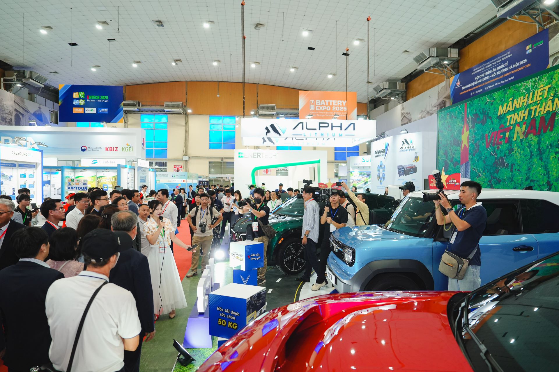 Tại Triển lãm quốc tế Công nghệ Năng lượng – Môi trường Hà Nội (Entech Hanoi 2025), dàn xe điện của VinFast trở thành điểm nhấn nổi bật, thu hút đông đảo khách tham quan.