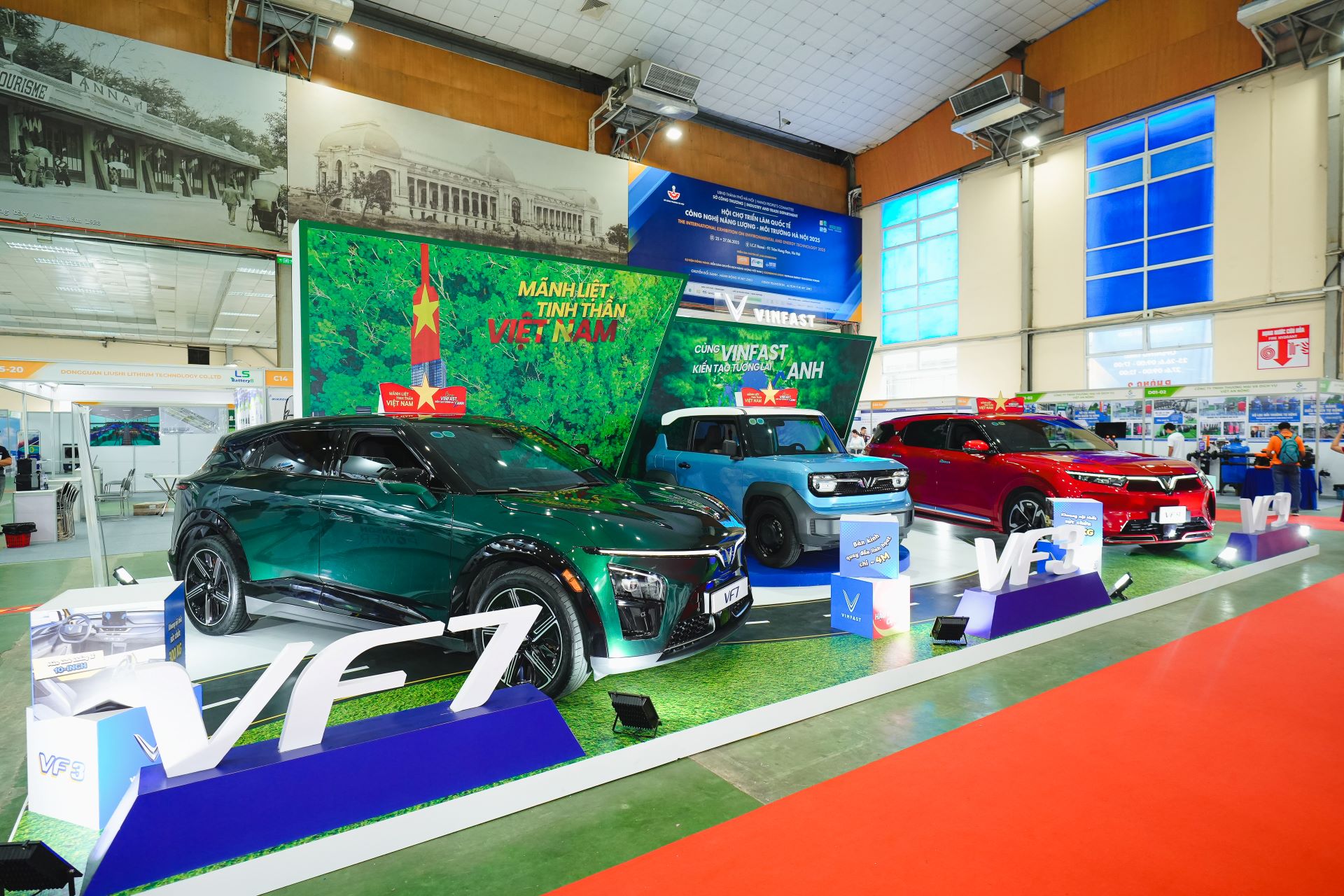 Trong không khí sôi động của sự kiện, gian hàng VinFast nổi bật với không gian trưng bày các mẫu xe điện VinFast VF 3, VF 7 và VF 9. Với thiết kế trẻ trung, bắt mắt cùng công nghệ hiện đại, các mẫu xe “xanh – sạch” của VinFast nhanh chóng trở thành điểm dừng chân yêu thích của nhiều khách tham quan.