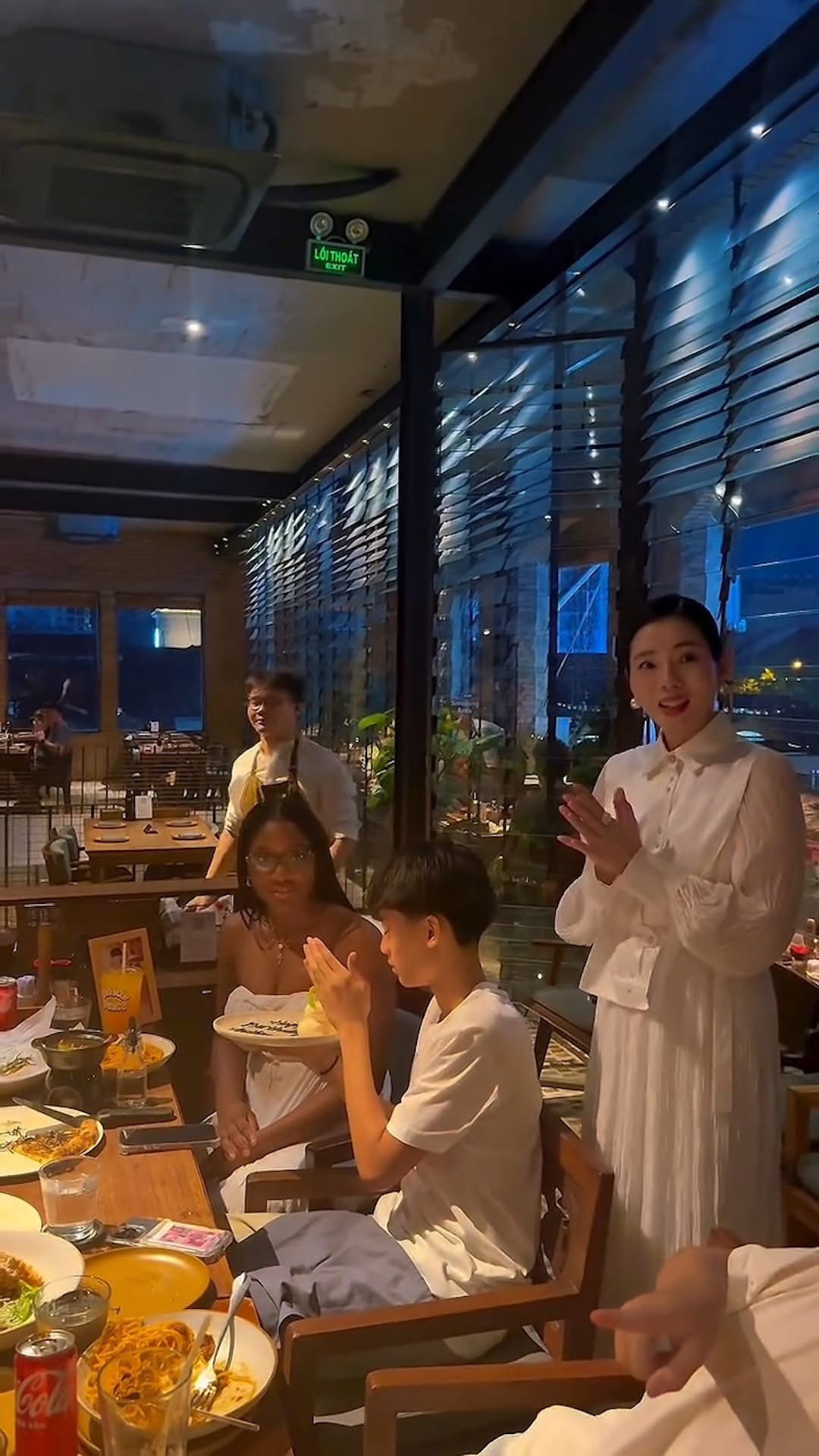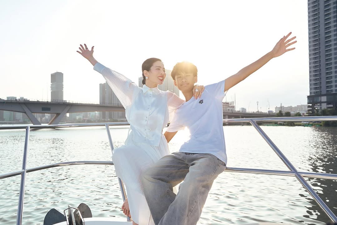 Nữ ca sĩ chia sẻ trên trang cá nhân: "Mẹ làm bữa tiệc nhỏ trên du thuyền cho các con ngắm Sài Gòn. Chàng trai của mẹ đón tuổi 14 ấm áp và thật vui vẻ nhỉ. Trọn vẹn 1 ngày tuyệt vời".